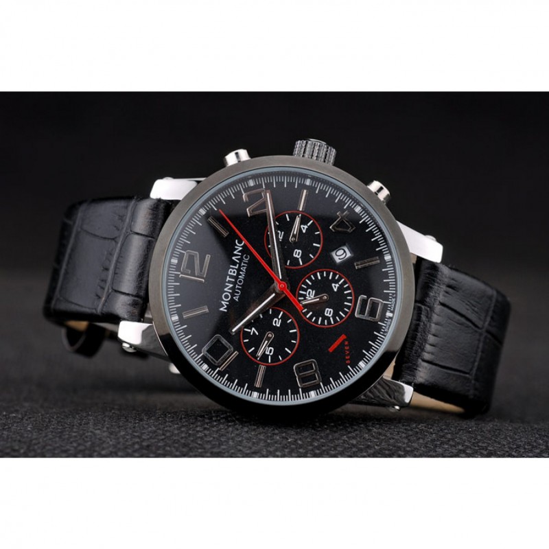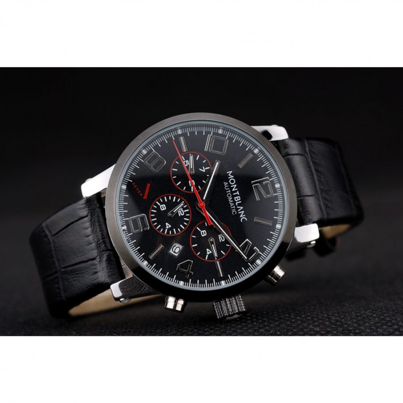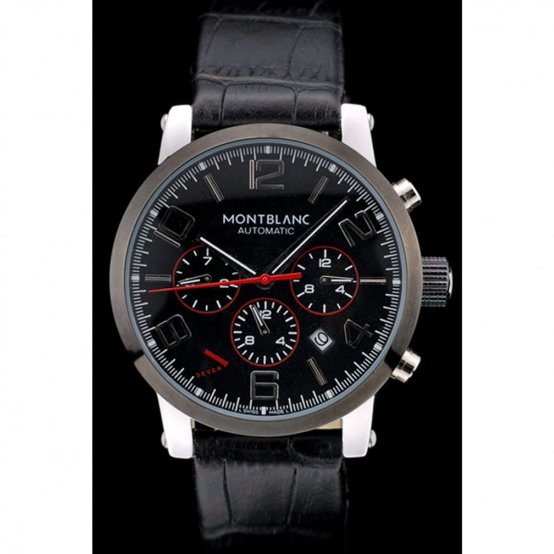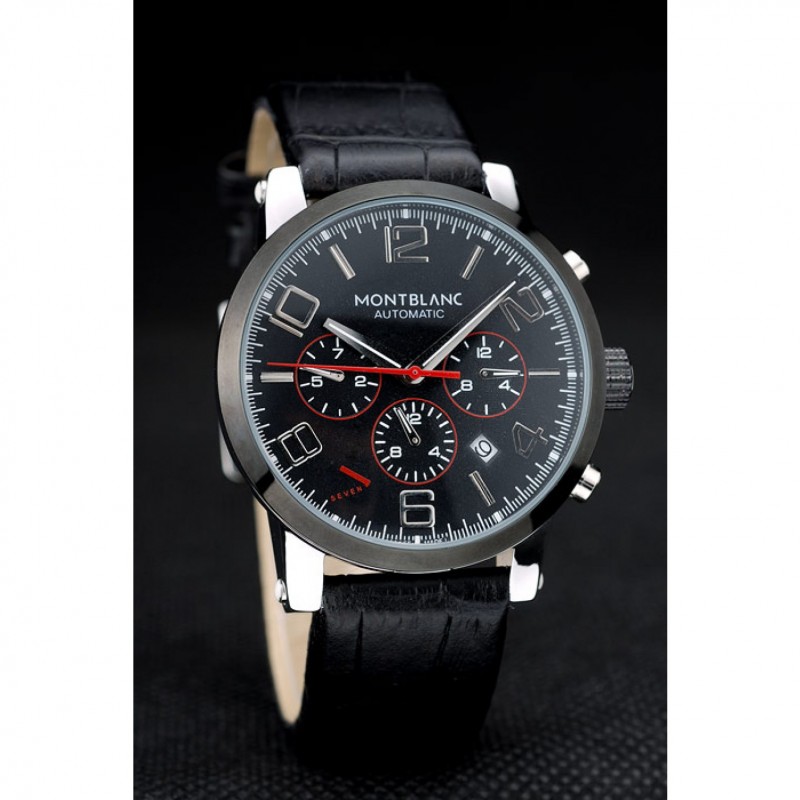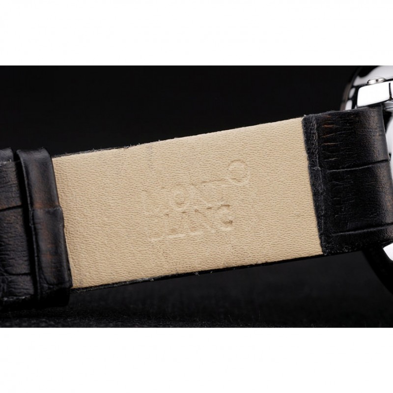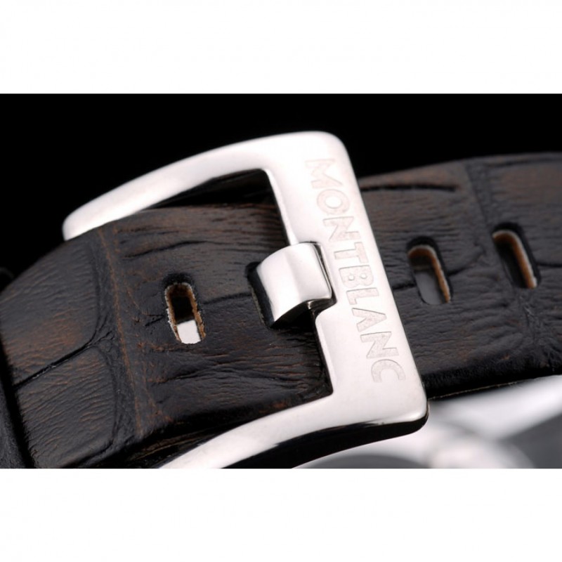 pulsera: correa de piel de cocodrilo negro en relieve calor MontBlanc con MontBlanc grabado de acero inoxidable pulido de gancho hebilla de cierre de