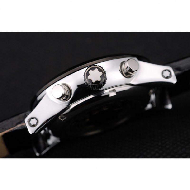 Crown: chapado-Ion corona cutwork con logo MontBlanc y dos inoxidable pulido botón coronas de empuje de acero en cada lado de ella