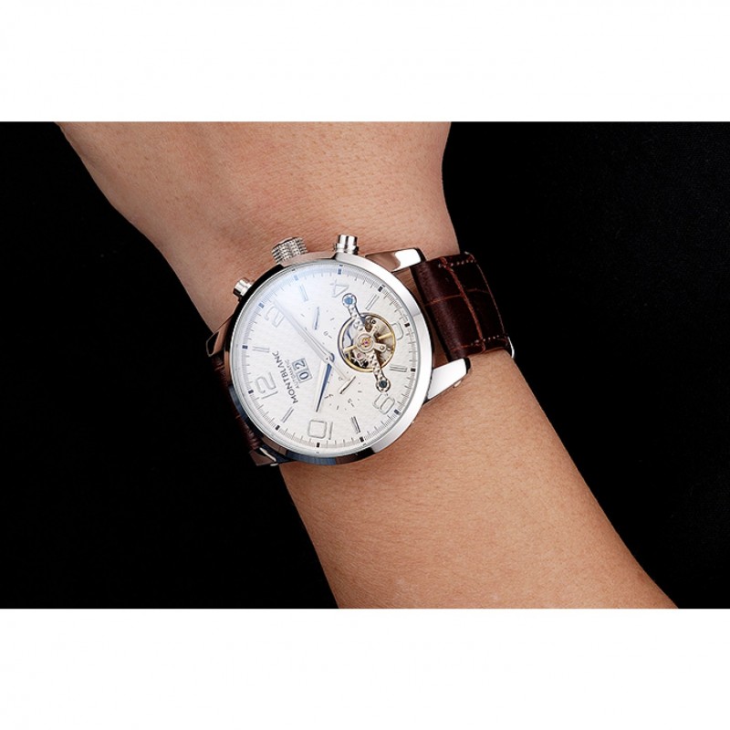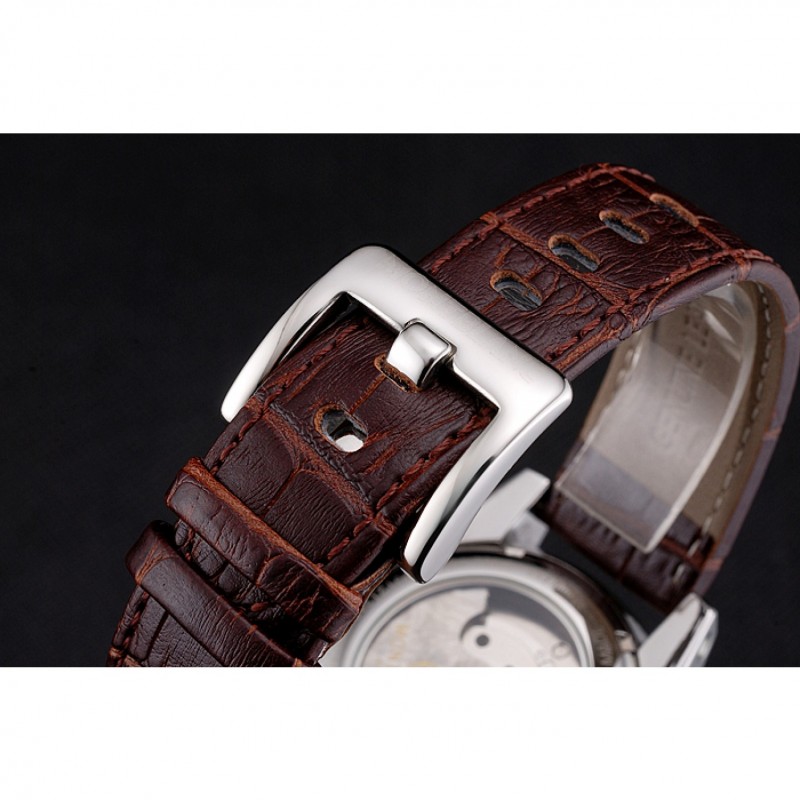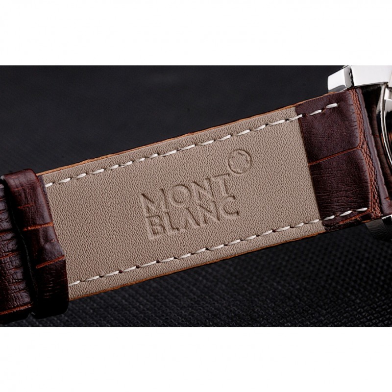 pulsera: correa de piel de cocodrilo marrón de calor MontBlanc en relieve con el logo MontBlanc inscrito en acero inoxidable pulido gancho oculto broche