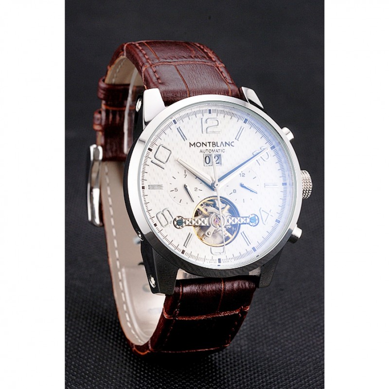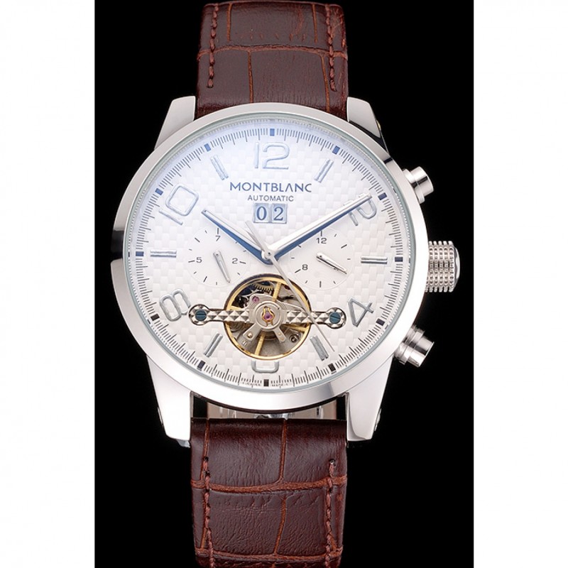Crown: pulido corona cutwork de acero inoxidable con logo MontBlanc y dos pulido de empuje de acero inoxidable coronas de botones en cada lado de ella