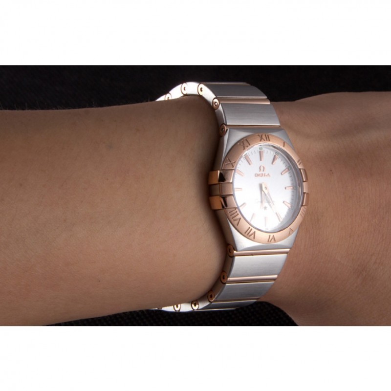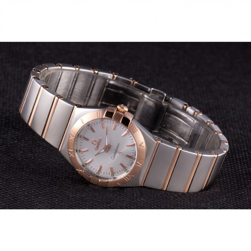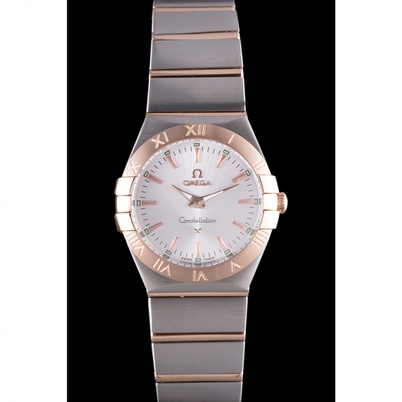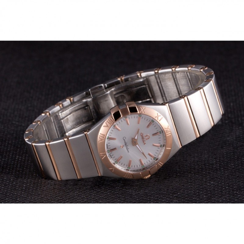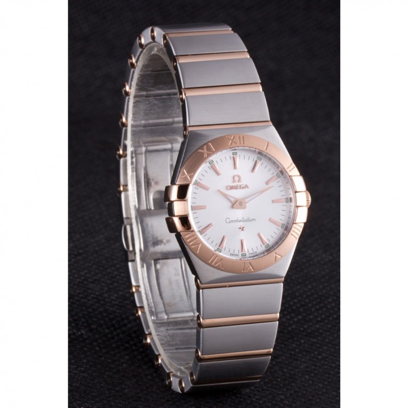 corona: Omega logotipo de 18k grabado de oro rosa plateado calado corona