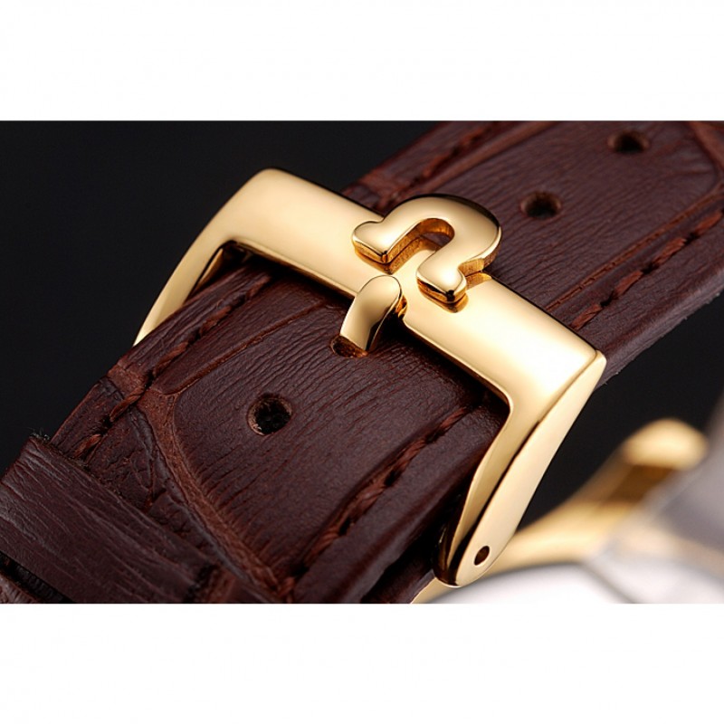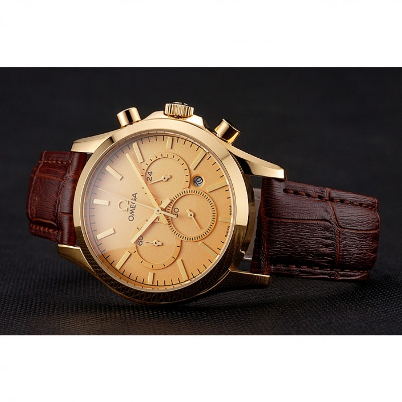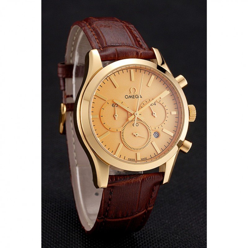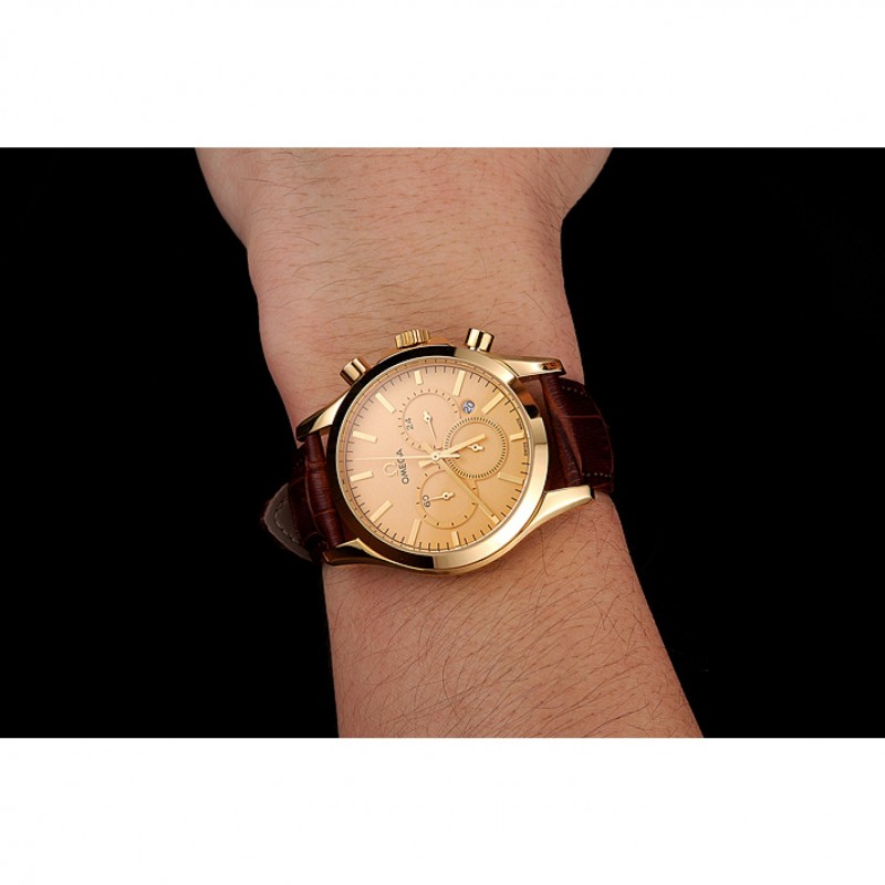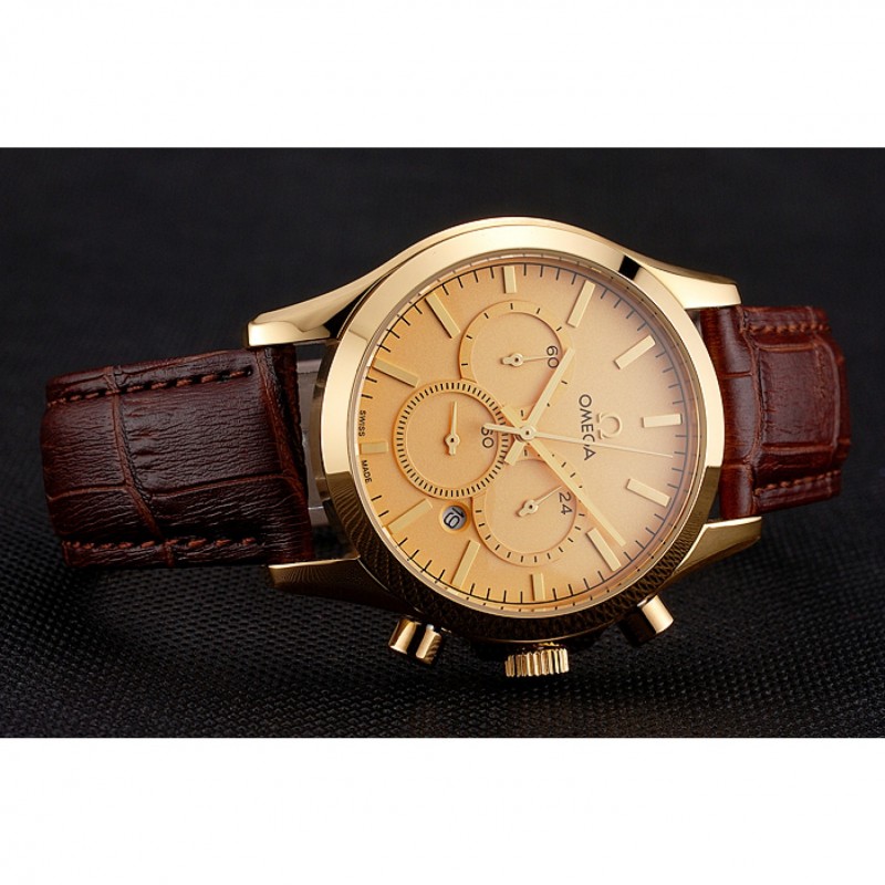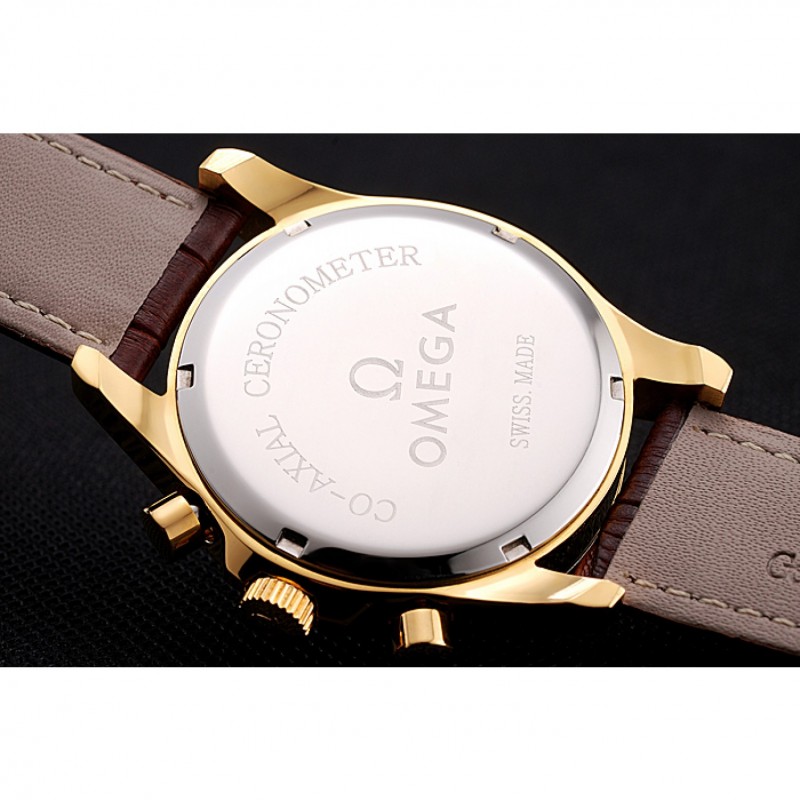 pulsera: correa de cuero Omega y el logotipo de calor en relieve de cocodrilo marrón con logo Omega tallada 18k oro amarillo plateado de gancho hebilla de cierre