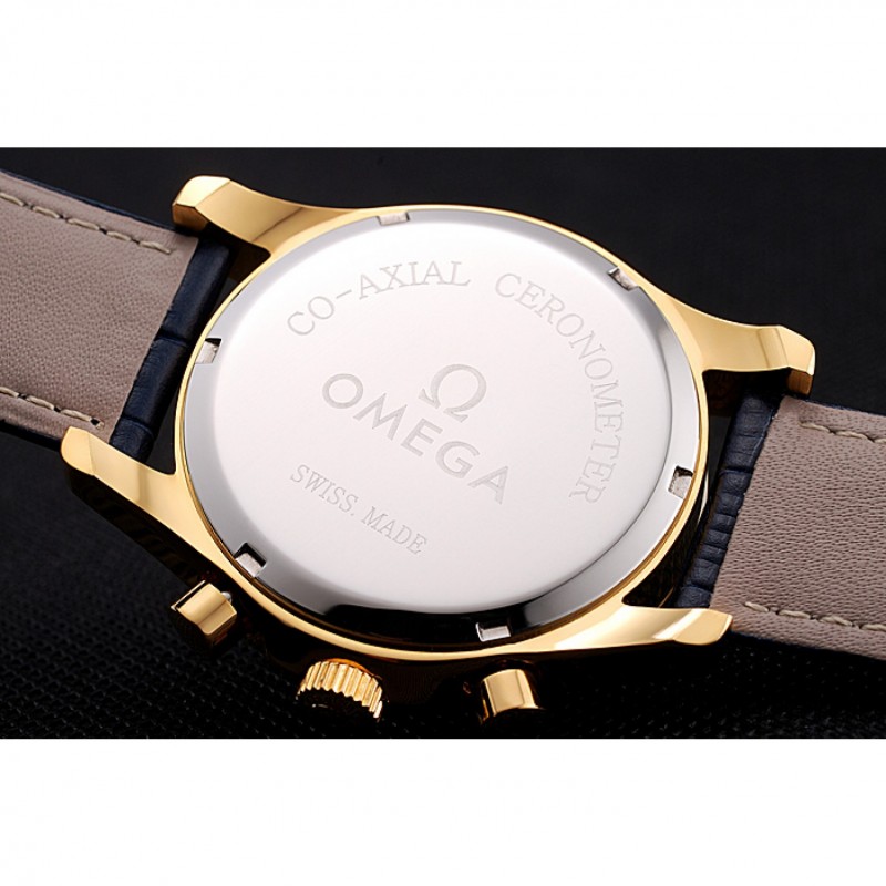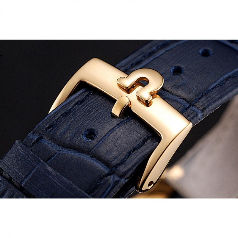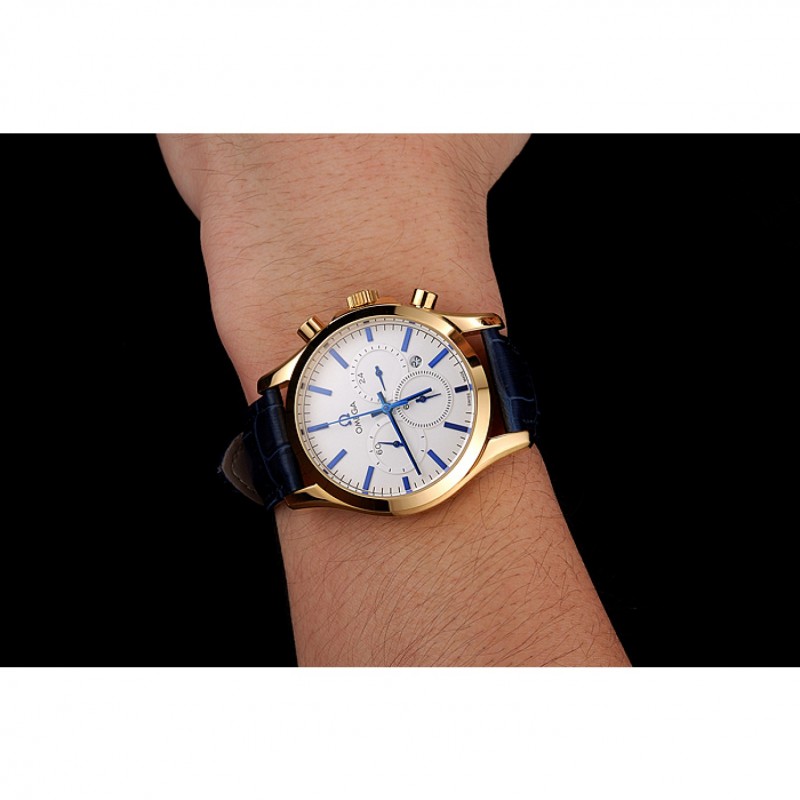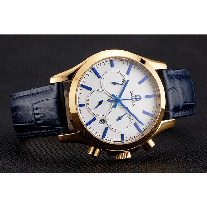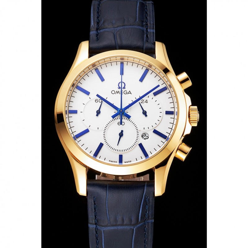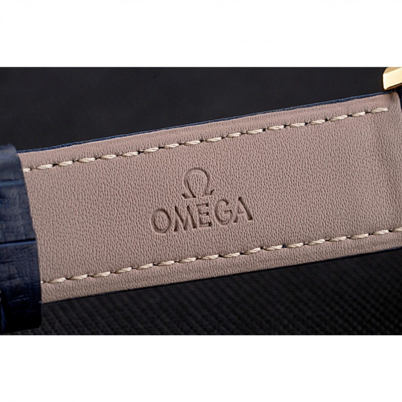 pulsera: correa de piel de cocodrilo azul Omega y el logotipo en relieve de calor con el logotipo de Omega tallada 18k oro amarillo plateado de gancho hebilla de cierre