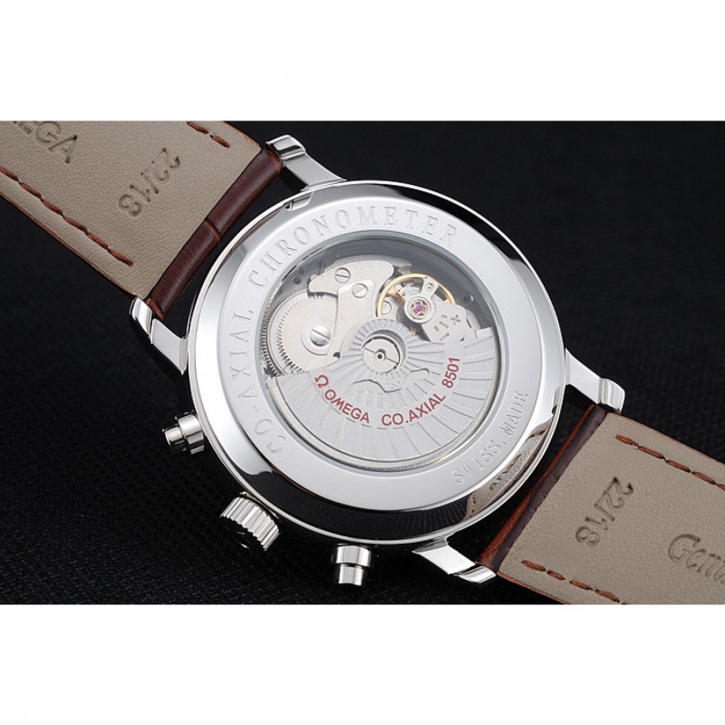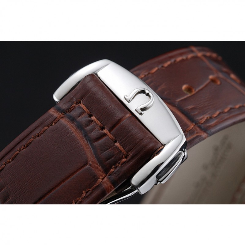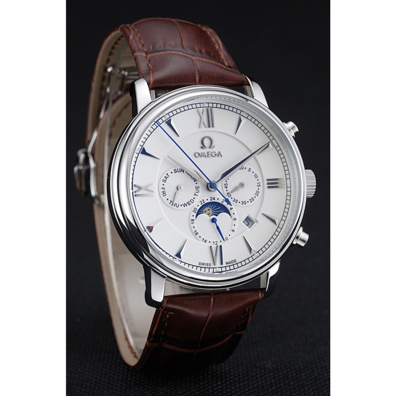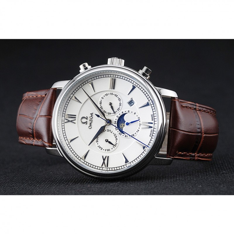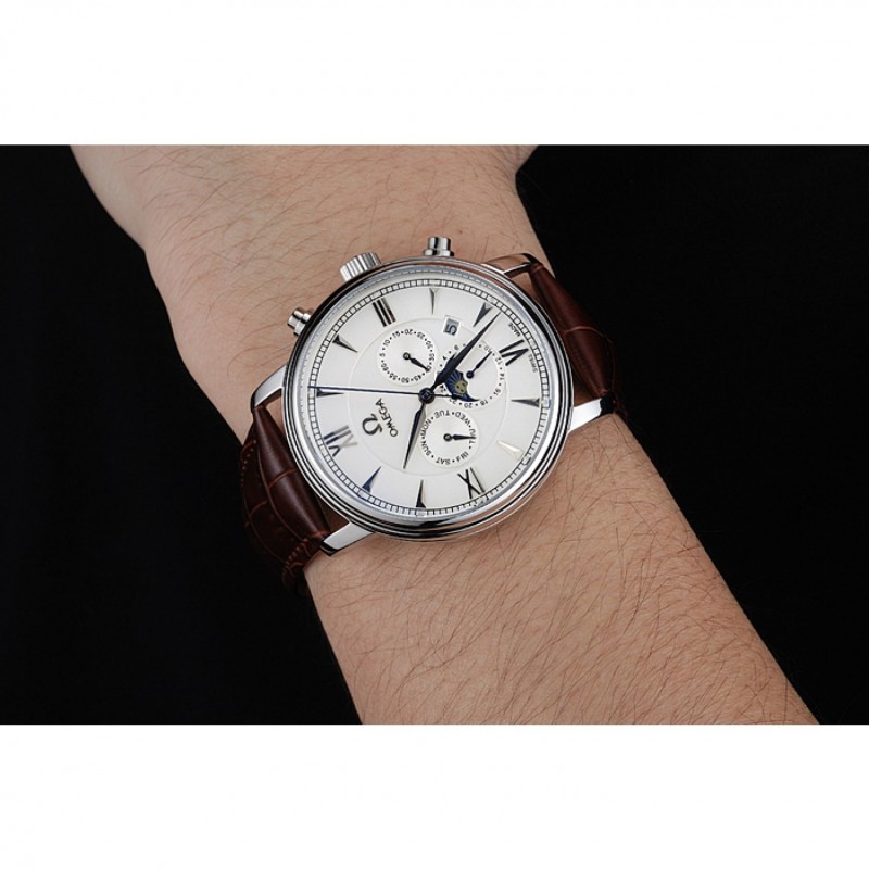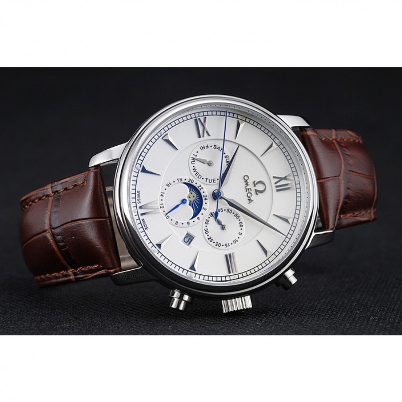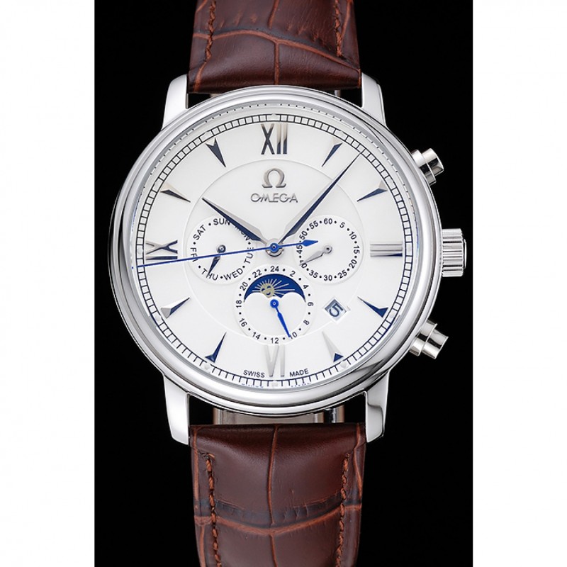 Inicio / Omega / Deville / Omega De Ville Fase Lunar Blanco Dial de plata del caso Brown pulsera de cuero 1454226