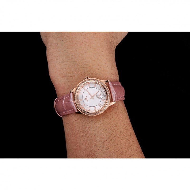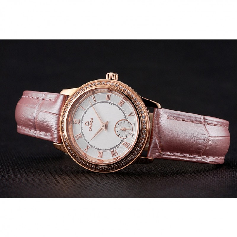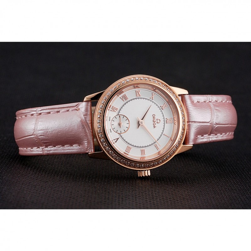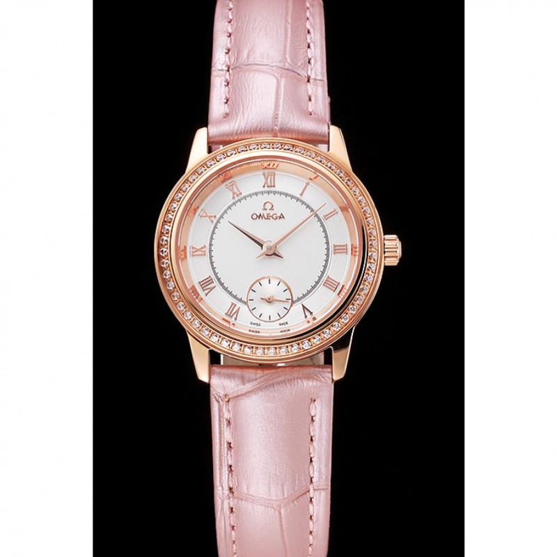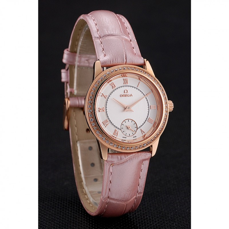 pulsera<: Omega y correa de piel de cocodrilo rosa de calor logotipo en relieve con el logotipo de Omega 18k tallado de oro rosa plateado broche de gancho hebilla