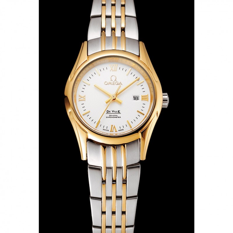 Inicio / Omega / Deville / Omega De Ville Señoras Esfera Blanca Caja Oro brazalete de dos tonos 1453786