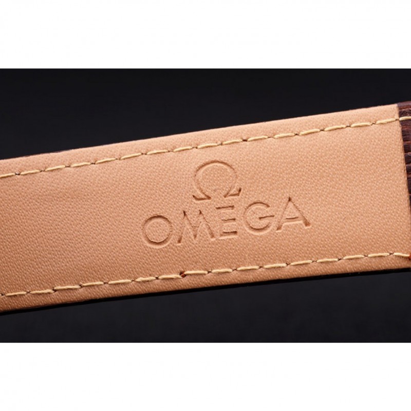 pulsera: calor Omega en relieve de color marrón correa de piel de cocodrilo con Omega inscrito rosa de 18 quilates chapado en oro plegable en cierre de gancho