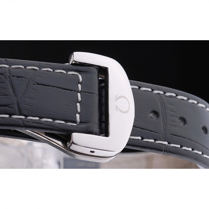 pulsera: Negro correa de piel de cocodrilo con costura blanca y el logotipo de Omega grabado de acero inoxidable gancho hebilla de cierre
