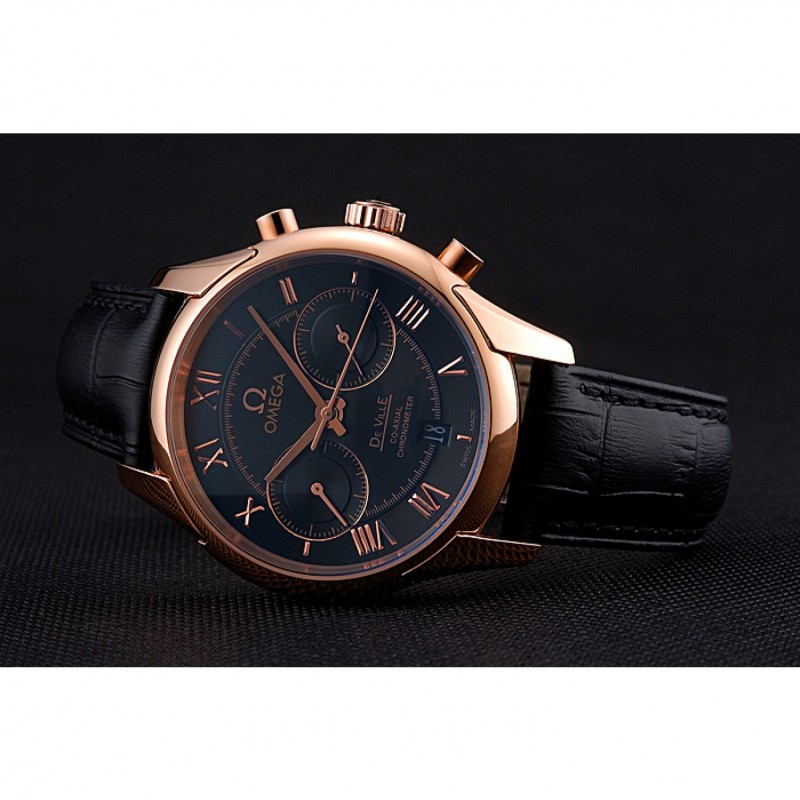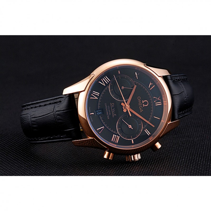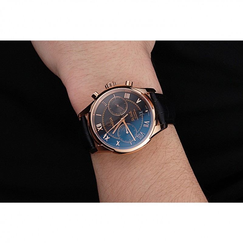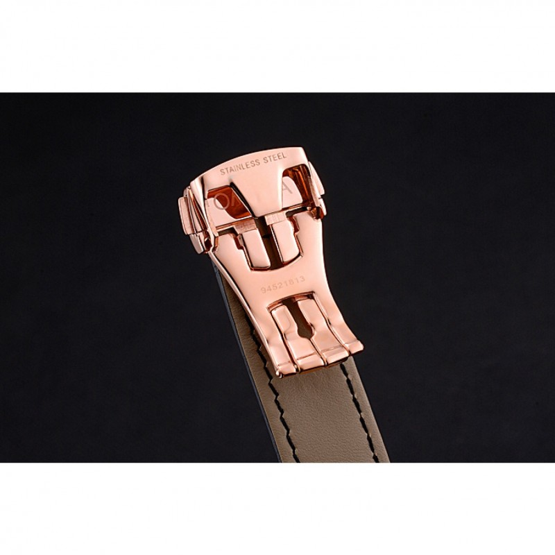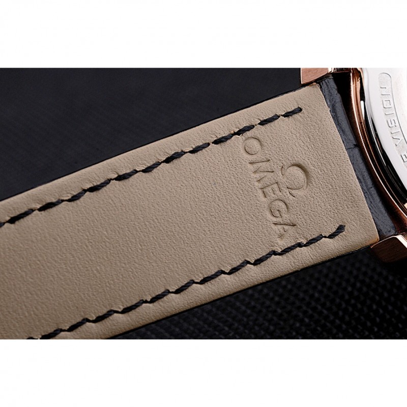 pulsera:correa de piel de cocodrilo negro en relieveOmega, el logotipo y código de producto de calor con el logotipo de 18k grabado de oro rosa plateado empuje de liberación del gancho del corchete