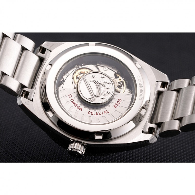 Volver: transparentes mecánicos-revelando atrás con un acero inoxidable pulido complemento de llanta y Omega inscripción