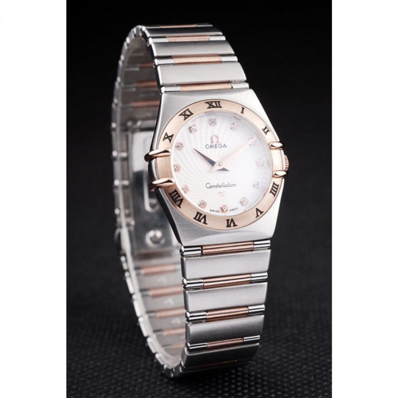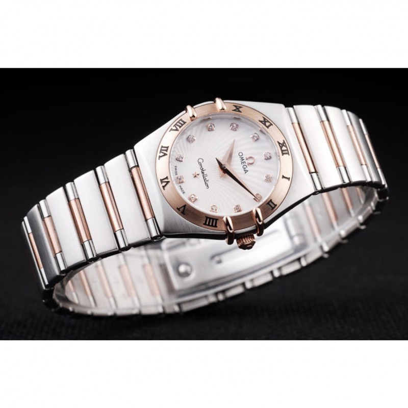 Omega joyería suiza constelación de marcación caja de oro rosa Pequeño radial distintivo blanco