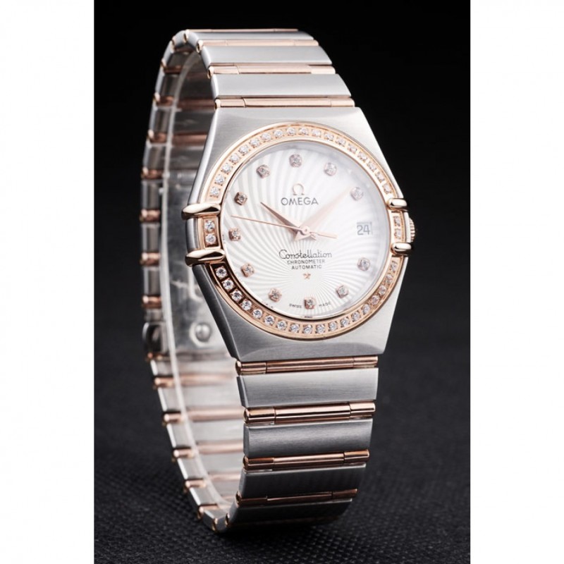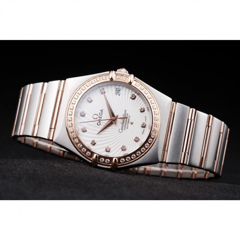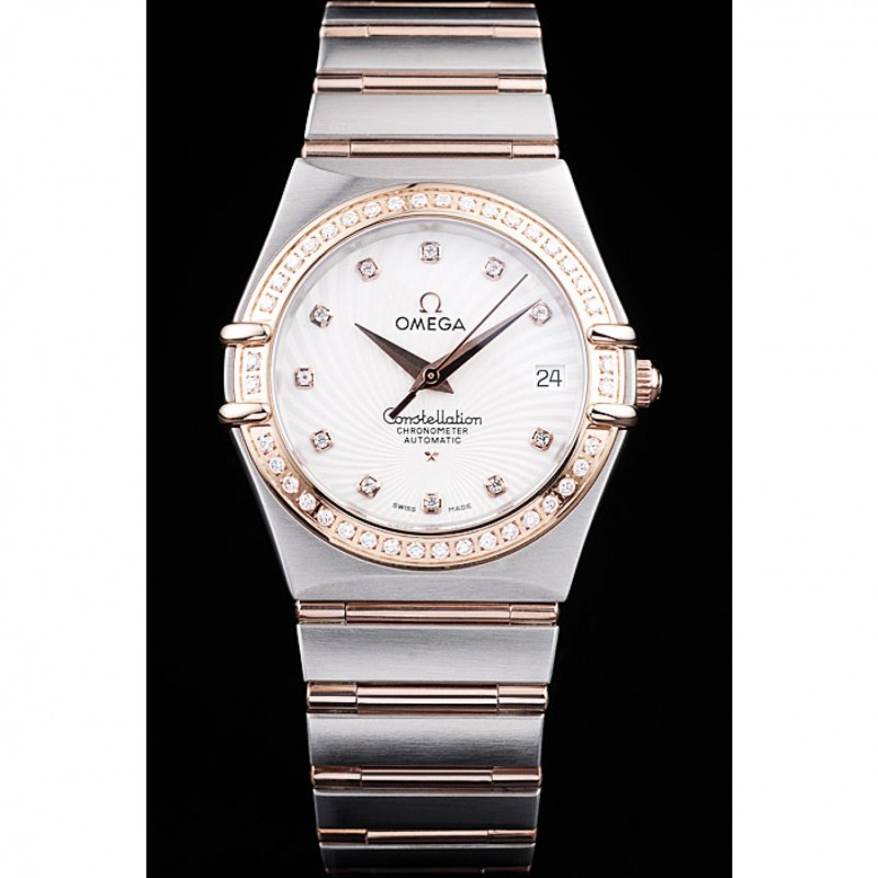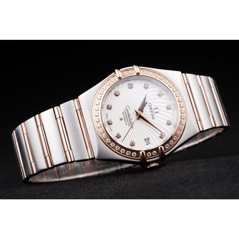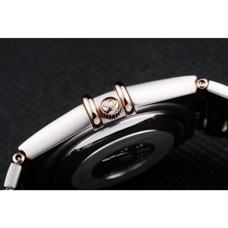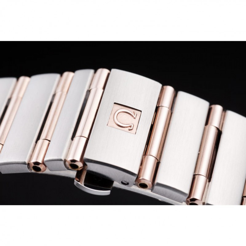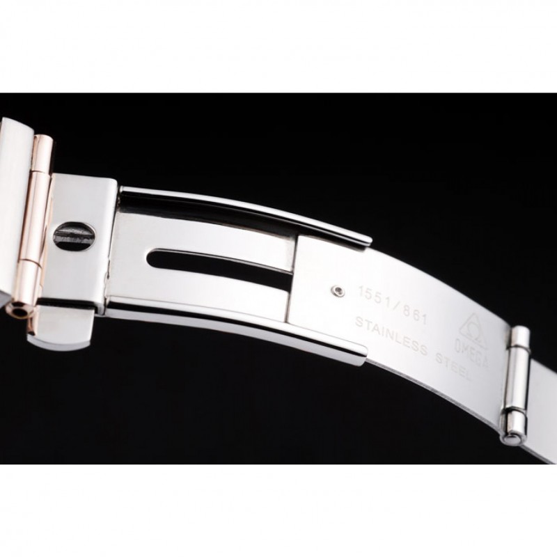 pulsera: cepillado de acero inoxidable y la cadena de acoplamiento rosa-oro pulsera con cierre oculto y el logotipo de Omega en la parte superior