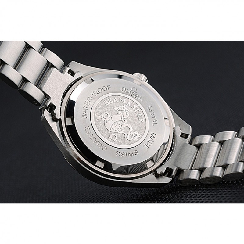 Volver: de acero inoxidable pulido snap-in espalda con Omega Seamaster inscripción