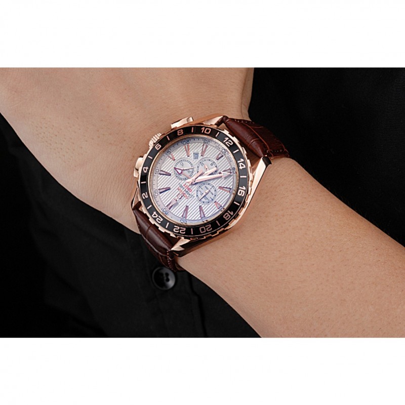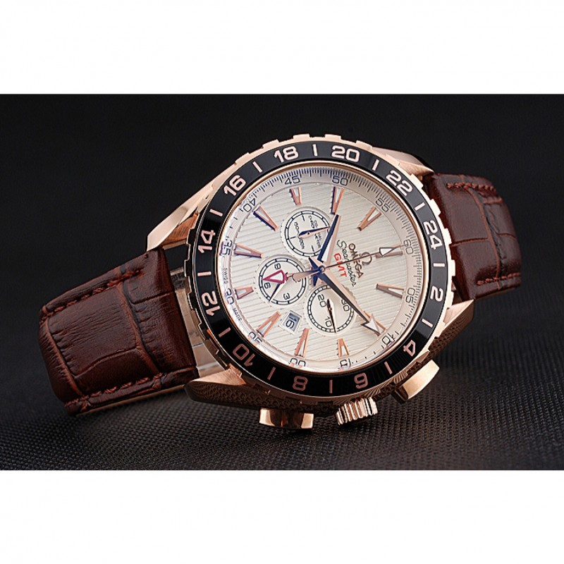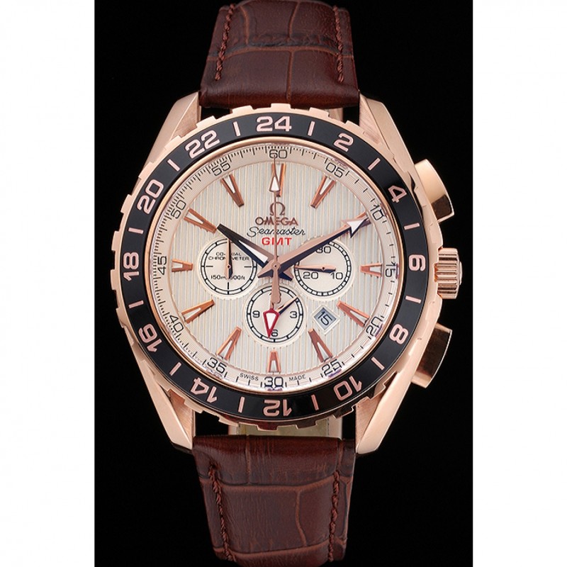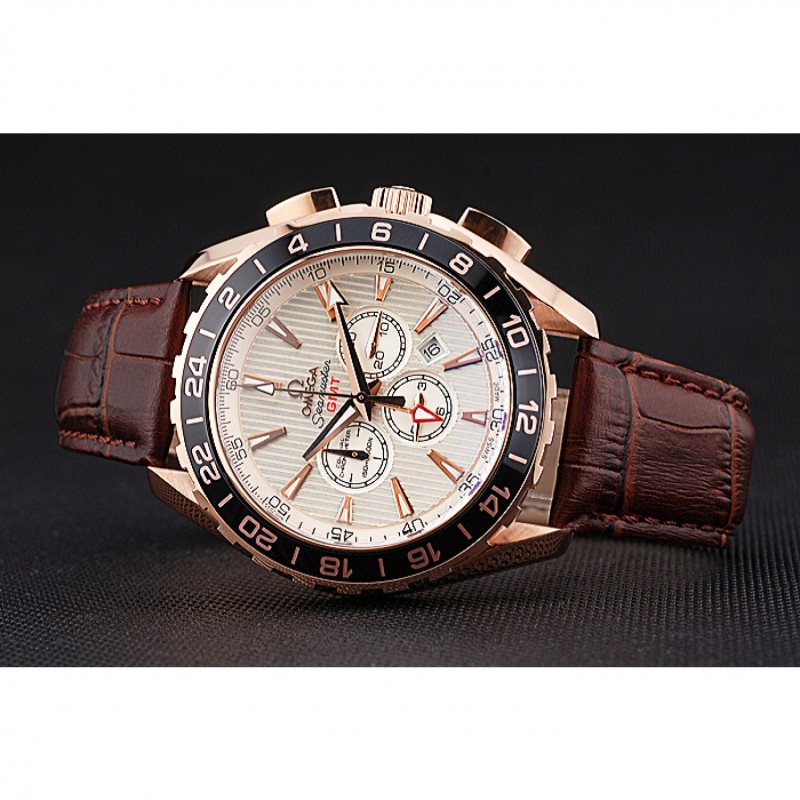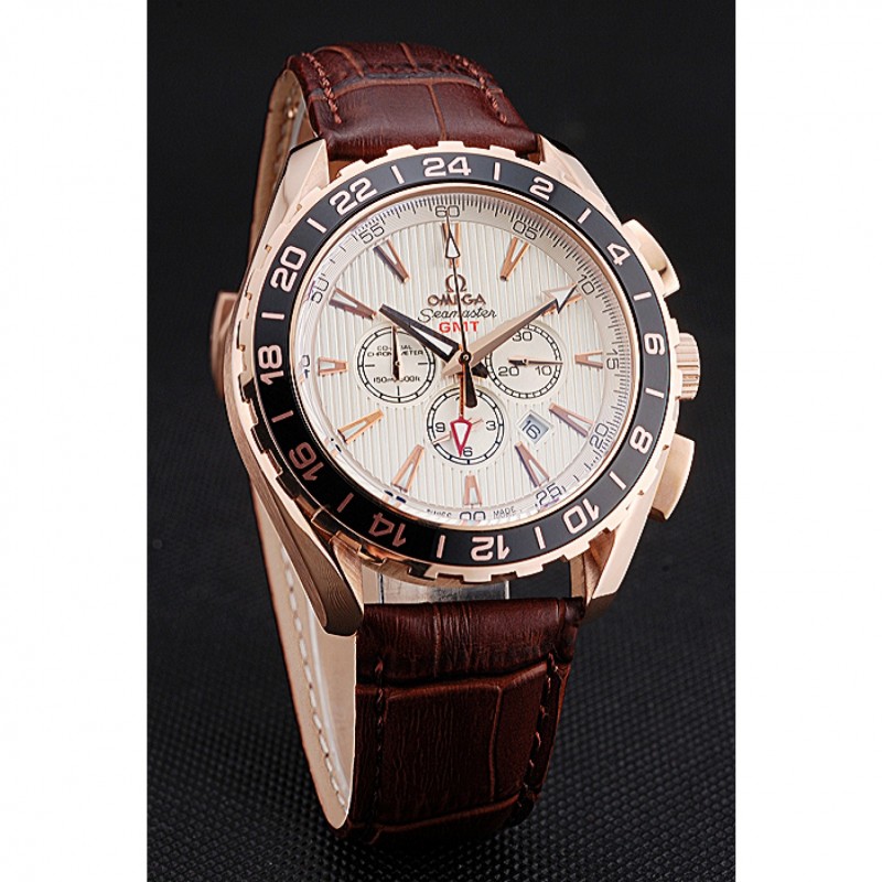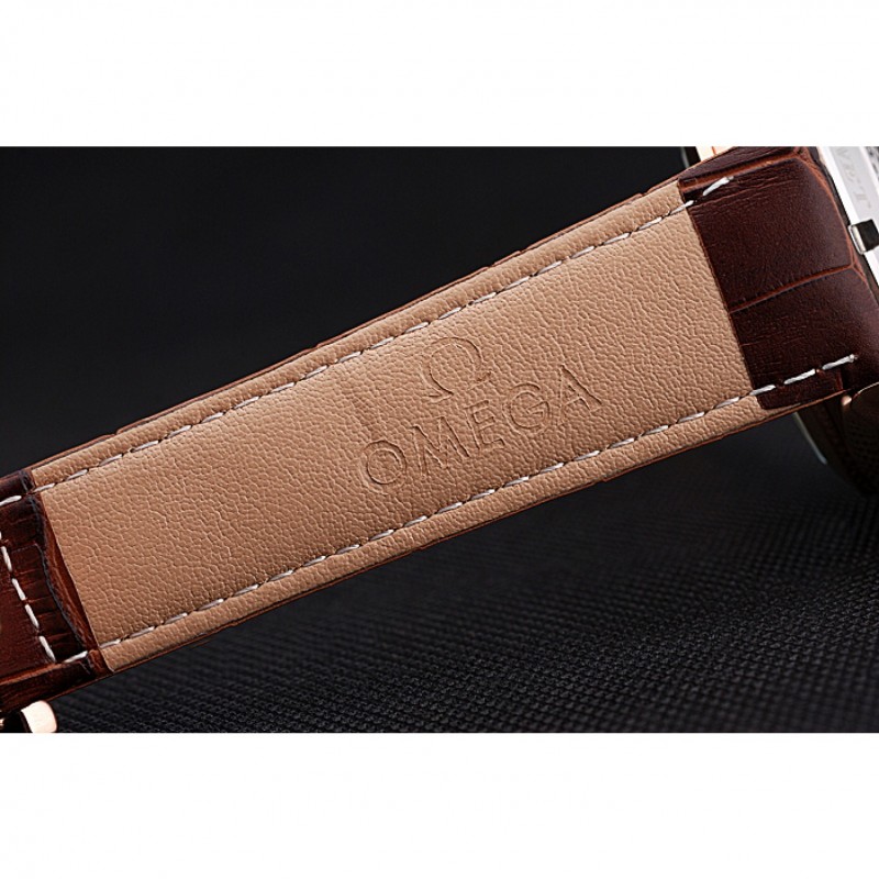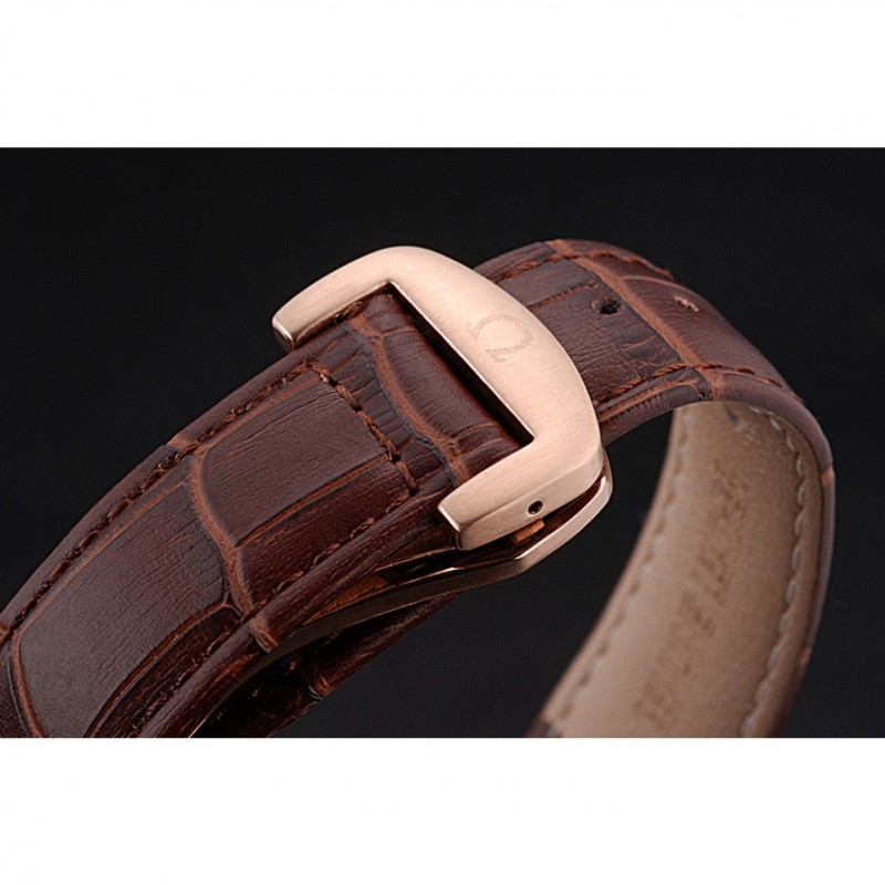 pulsera: correa de cuero logo y el calor Omega en relieve de cocodrilo marrón con el logotipo de 18k grabado de oro rosa plateado gancho de cierre de