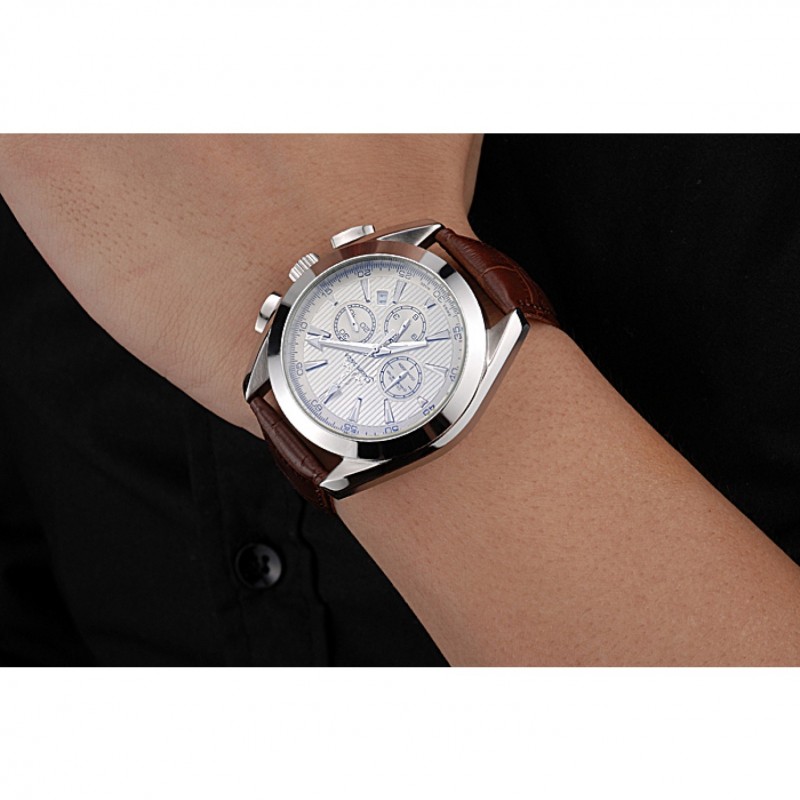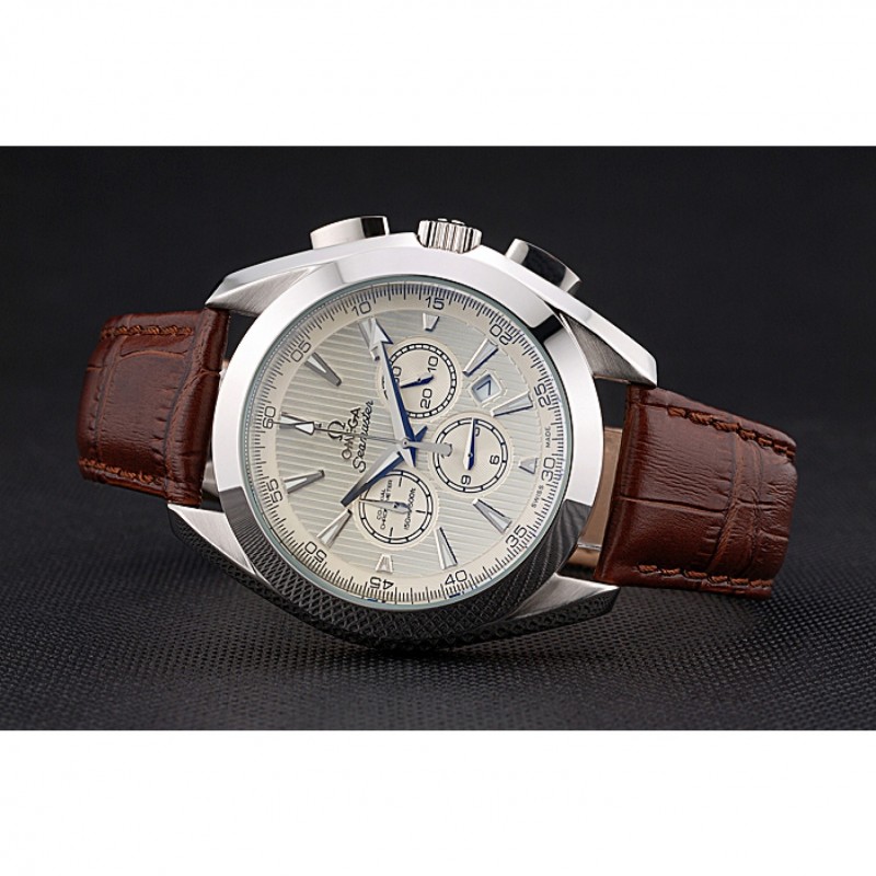 pulsera: logotipo y calor Omega en relieve correa de piel de cocodrilo marrón con el logo grabado broche de cepillado gancho de acero inoxidable