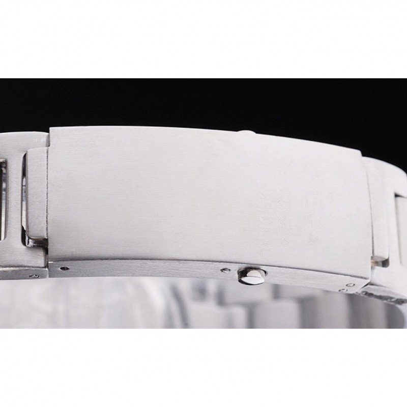 pulsera: cepillado brazalete de eslabones de acero inoxidable con nombre Omega y el logotipo inscrito empuje botón de despliegue libera el cierre