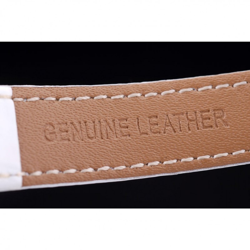 pulsera: correa de piel de cocodrilo calor Omega en relieve patente blanco con Omega inscrito inoxidable pulido acero gancho hebilla de cierre