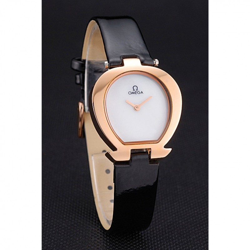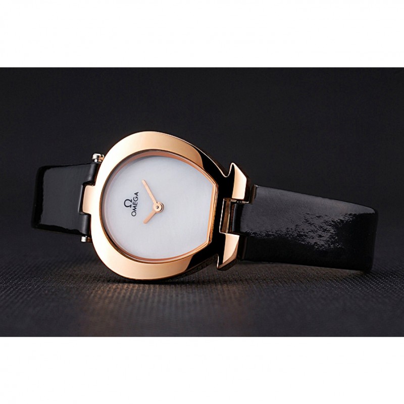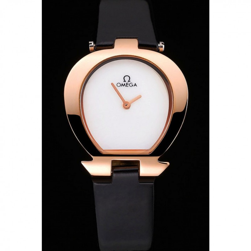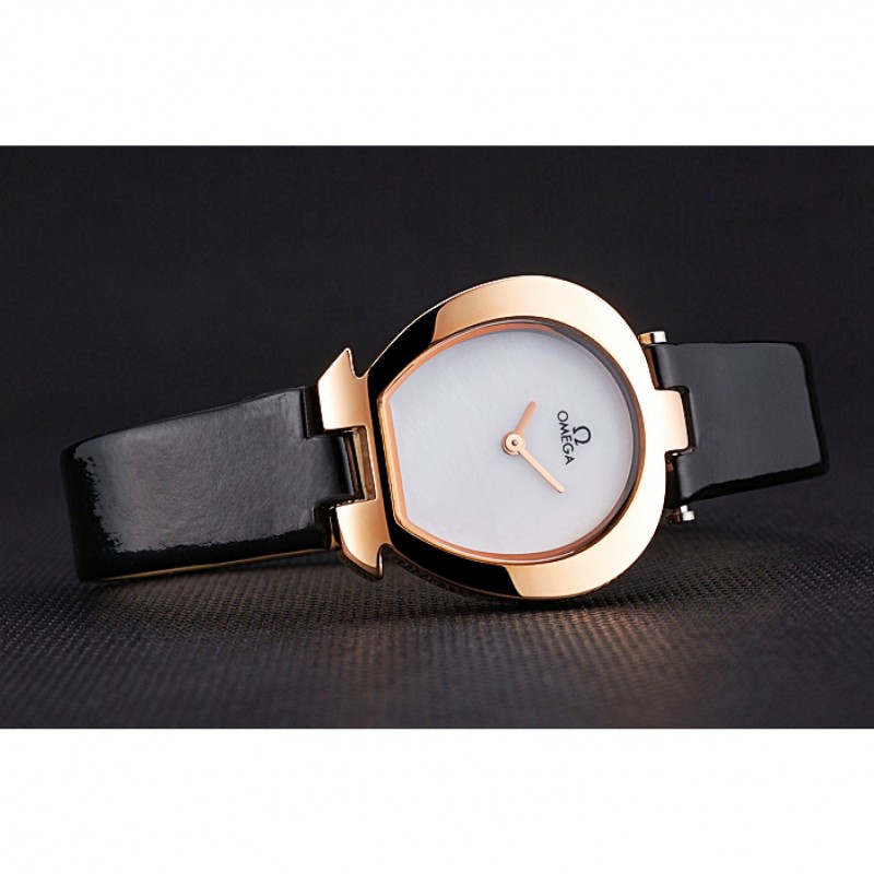Inicio / Omega / Deville / Omega señoras reloj de esfera blanca de la caja Oro Negro correa de cuero 622820
