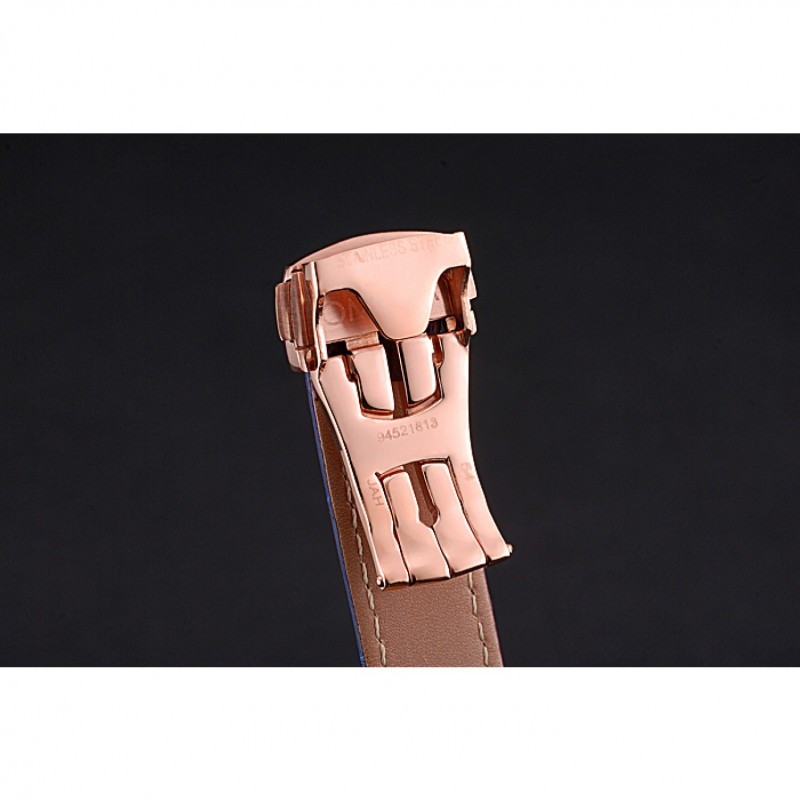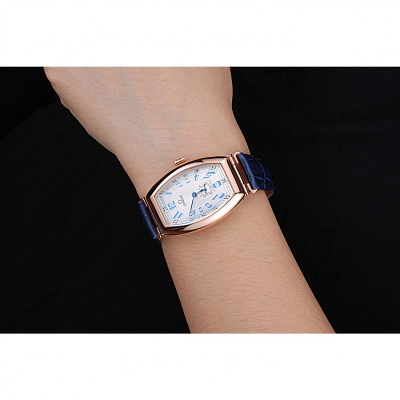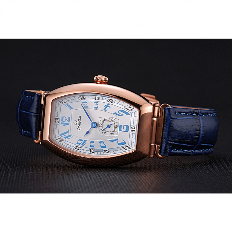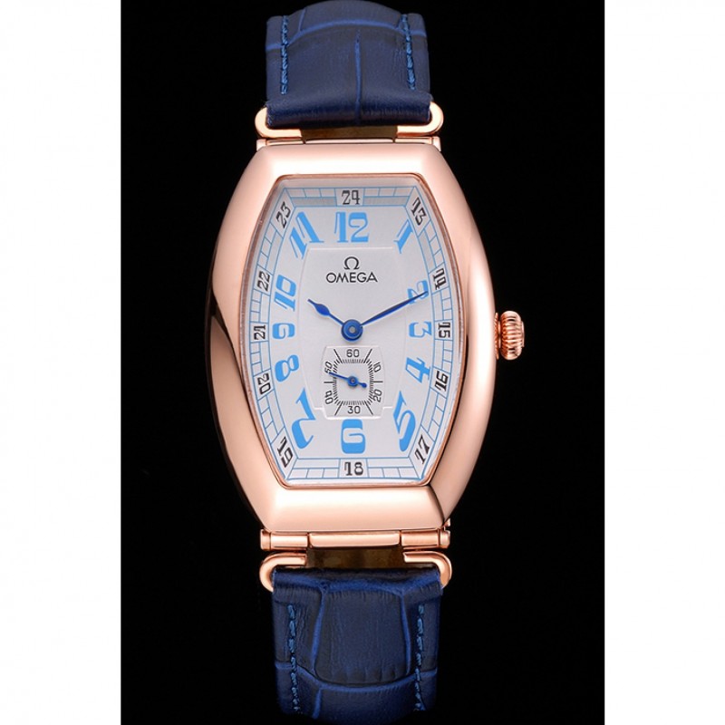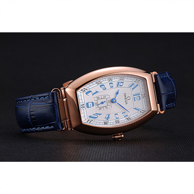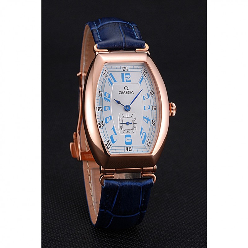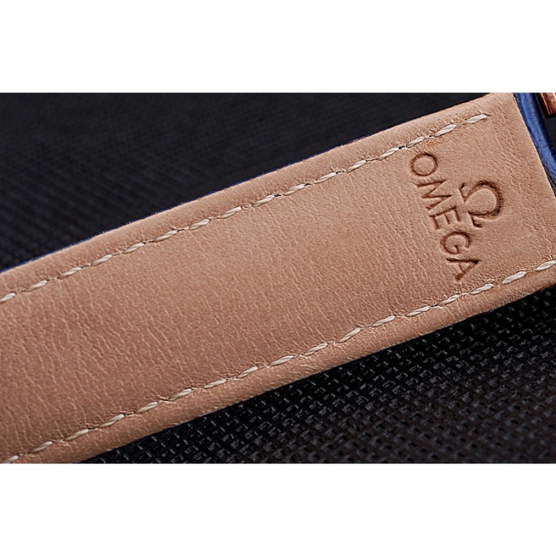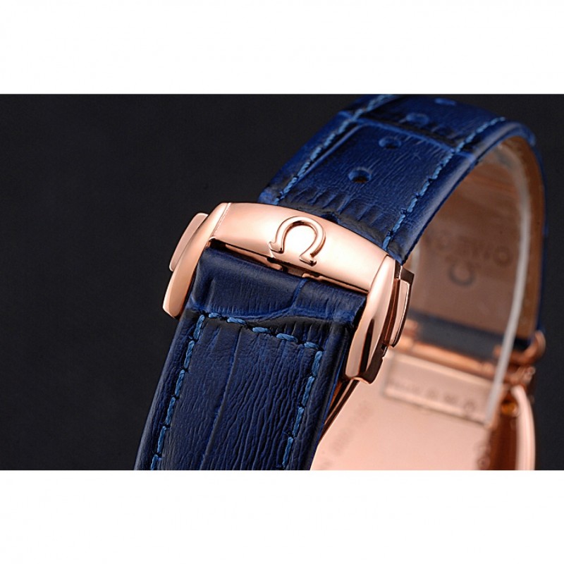 pulsera: logotipo y correa de cuero Omega calor en relieve de cocodrilo azul con el logotipo de 18k grabado de oro rosa plateado empuje de liberación del gancho del corchete