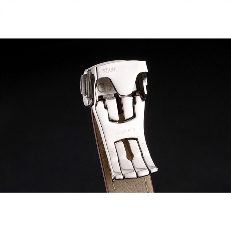 pulsera: correa de piel de cocodrilo Borgoña con el logotipo de Omega tallada de acero inoxidable pulido gancho de liberación empuje del corchete
