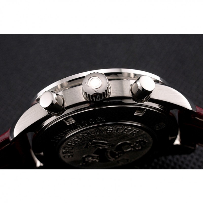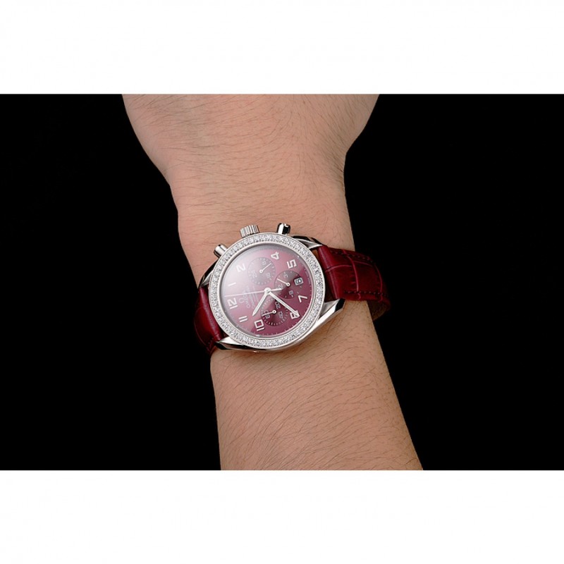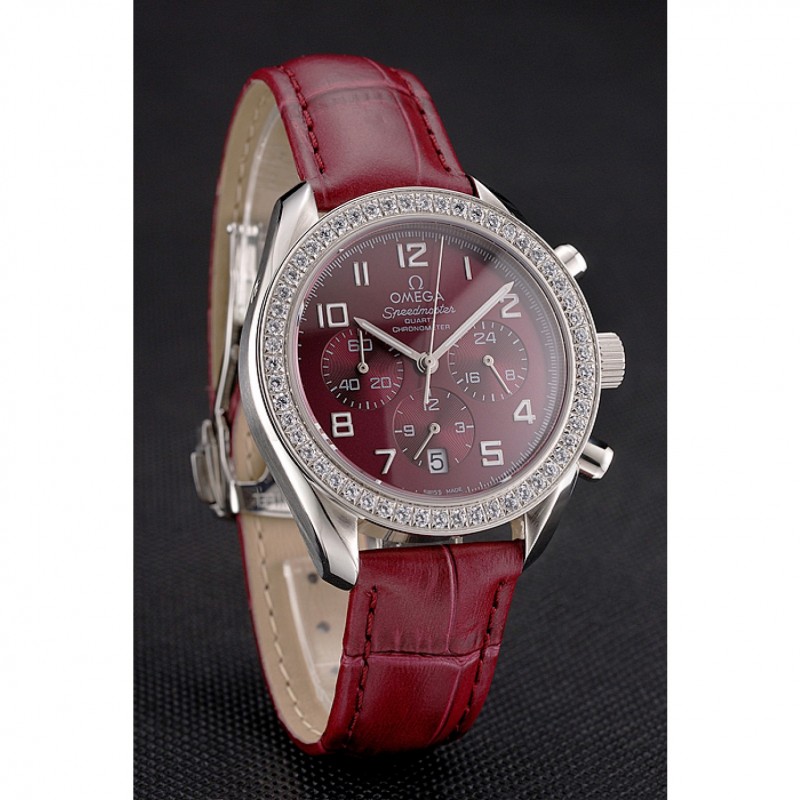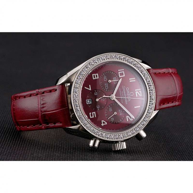 Inicio / Omega / Speedmaster / Omega Speedmaster Borgoña Dial correa de cuero caja de acero inoxidable bisel de diamantes Borgoña