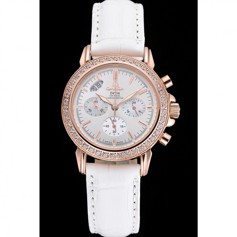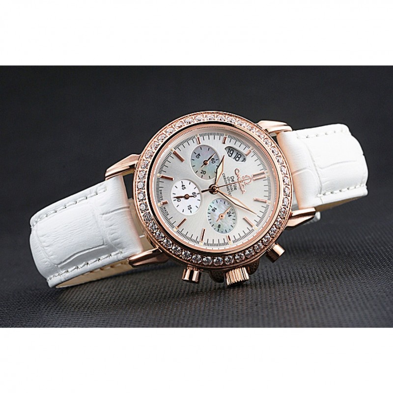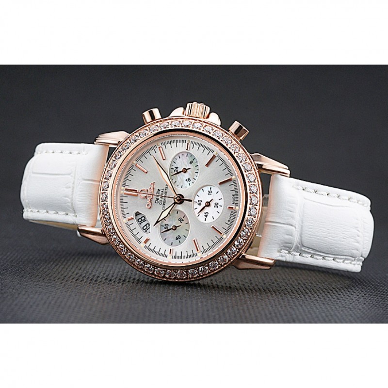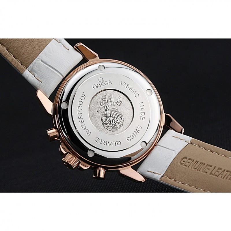 pulsera: correa de piel de cocodrilo blanco Omega y el logotipo en relieve de calor con el logotipo de 18k grabado de oro rosa plateado gancho hebilla de cierre
