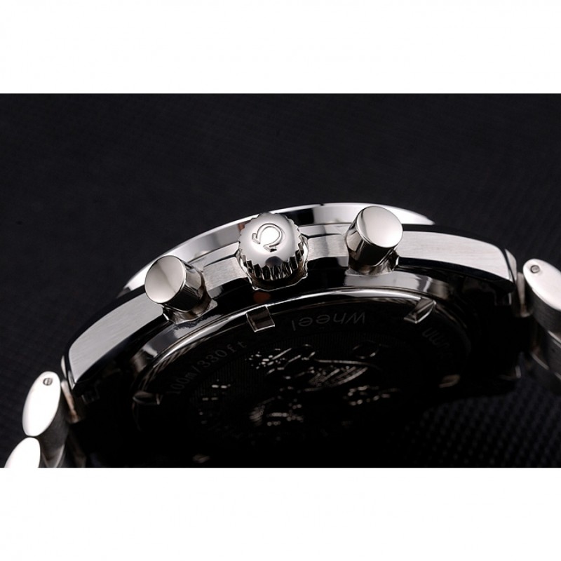 Corona: Omega logotipo grabado pulido corona cutwork de acero inoxidable con una ronda corona botón pulsador en cada lado de ella