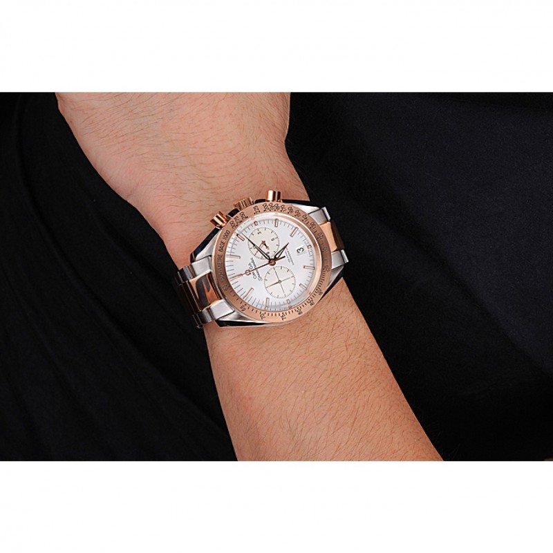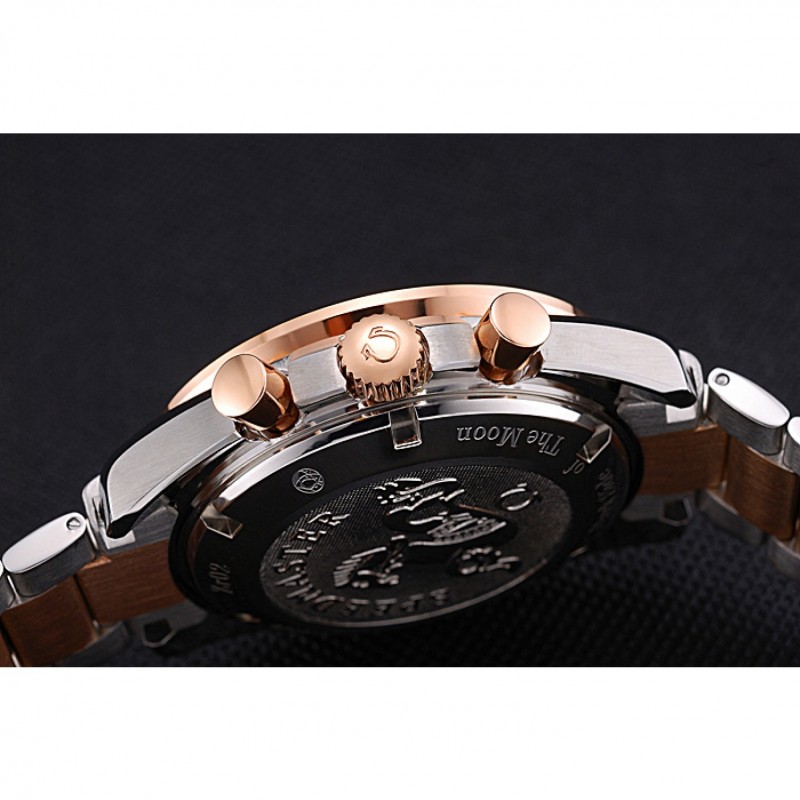 corona: 18k logo Omega grabado de oro rosa plateado corona calado con una rosa de 18 quilates chapado en oro ronda empuje botón de la corona en cada lado de ella