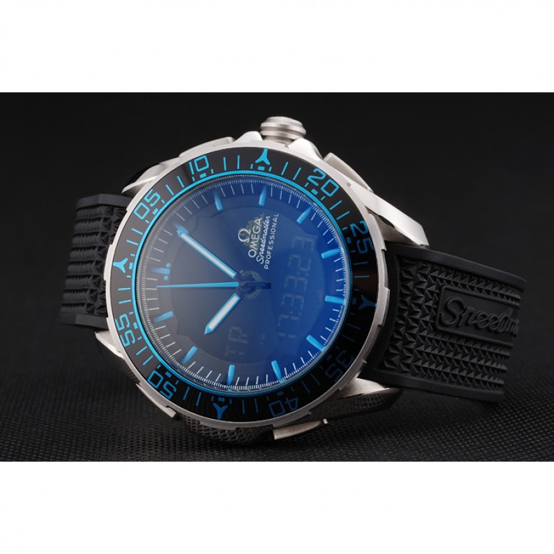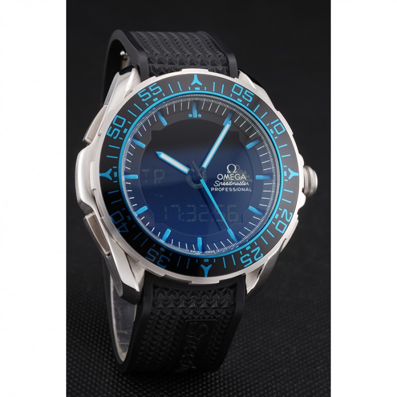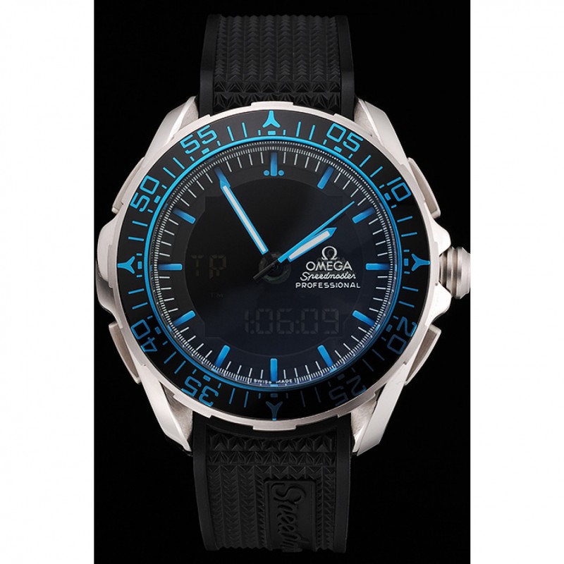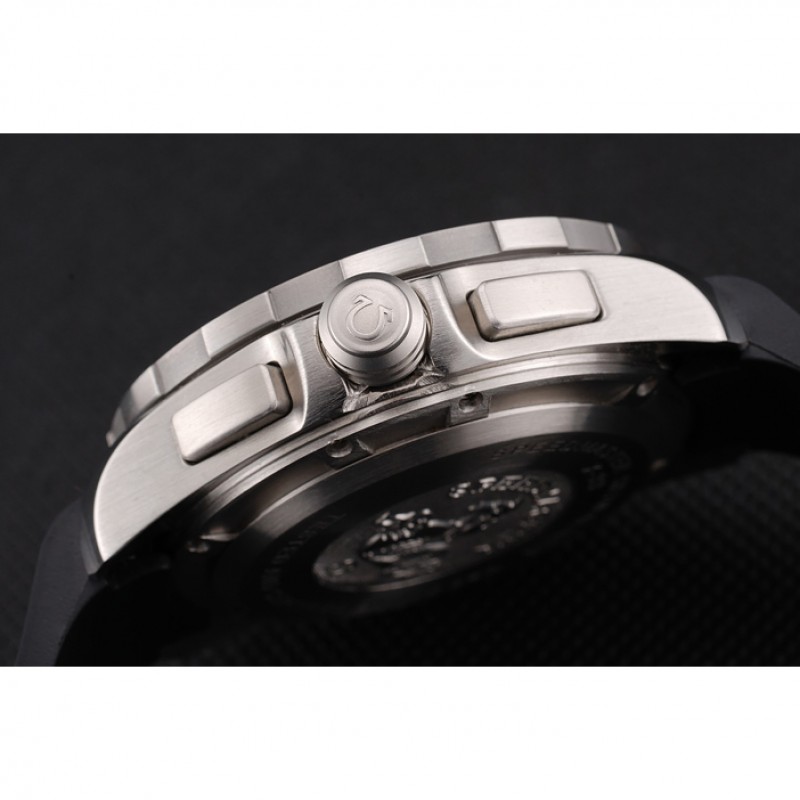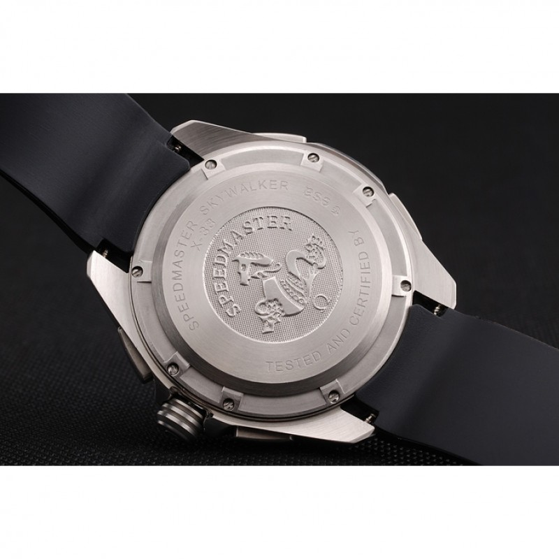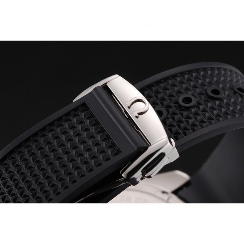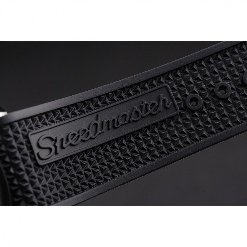pulsera: correa de caucho negro con textura de calor Speedmaster en relieve con el logo Omega grabado de acero inoxidable pulido de liberación empuje el gancho del corchete