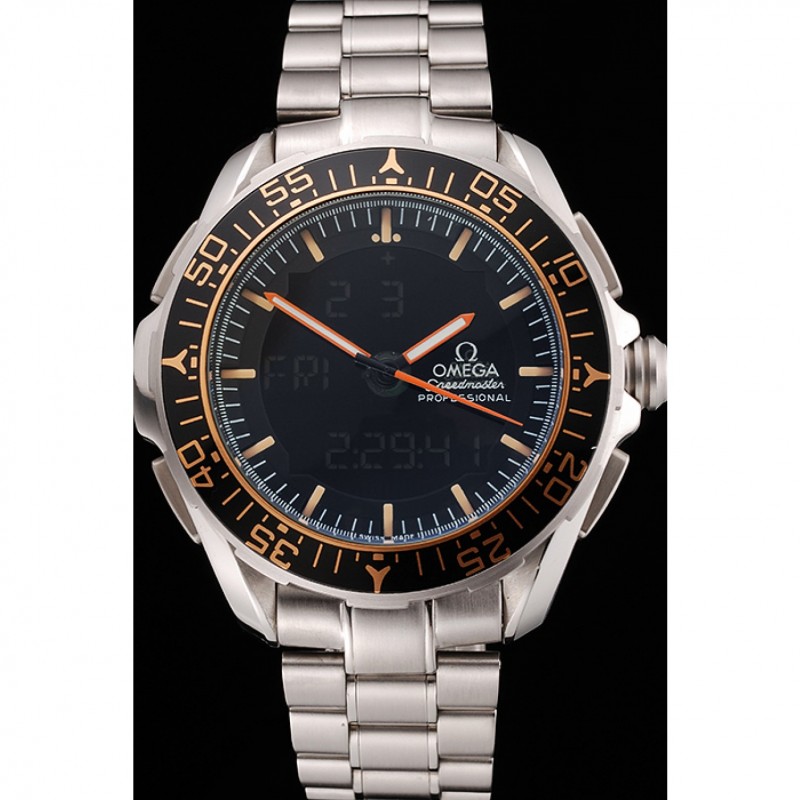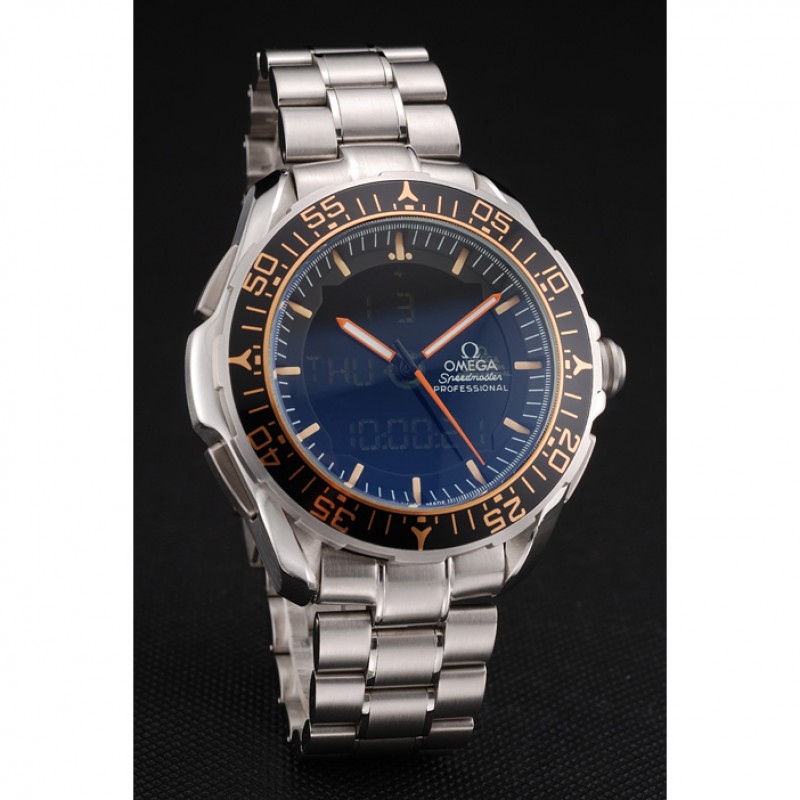 corona: logotipo de Omega grabado corona de acero inoxidable pulido con una forma rectangular corona pulsador a cada lado de ella