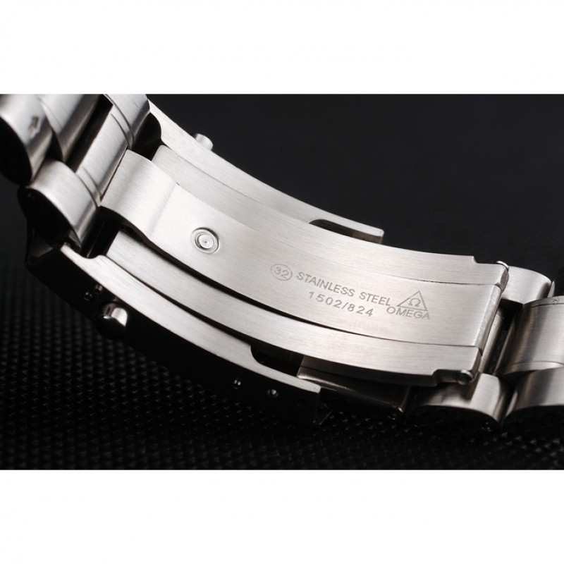 Corona: logo Omega grabado pulido corona de acero inoxidable con un pulsador rectangular corona en cada lado de ella