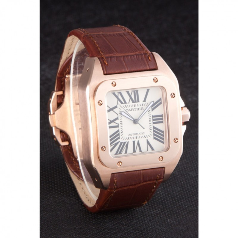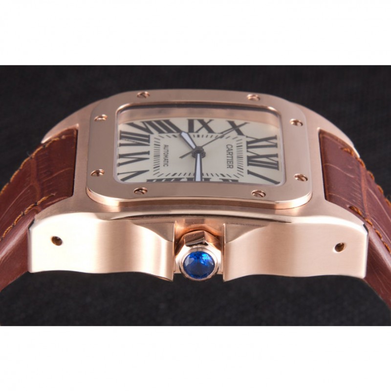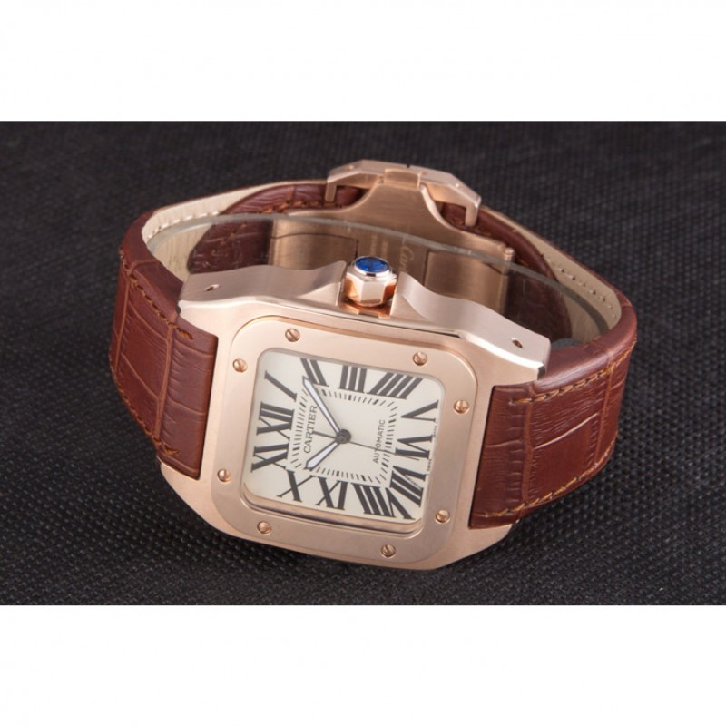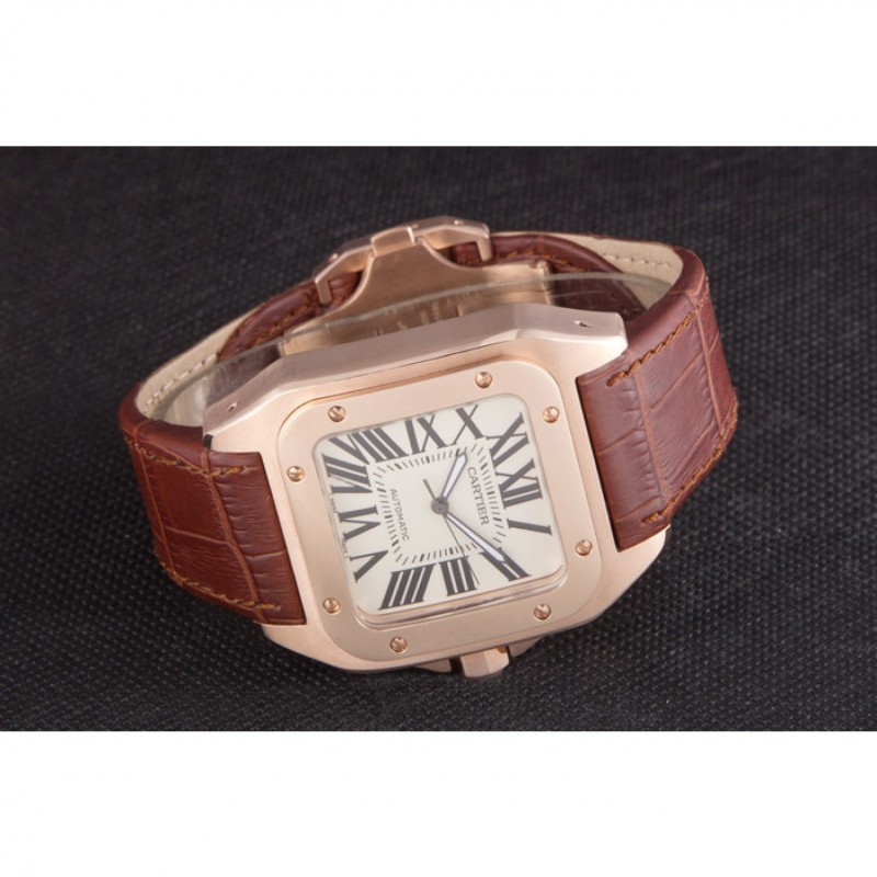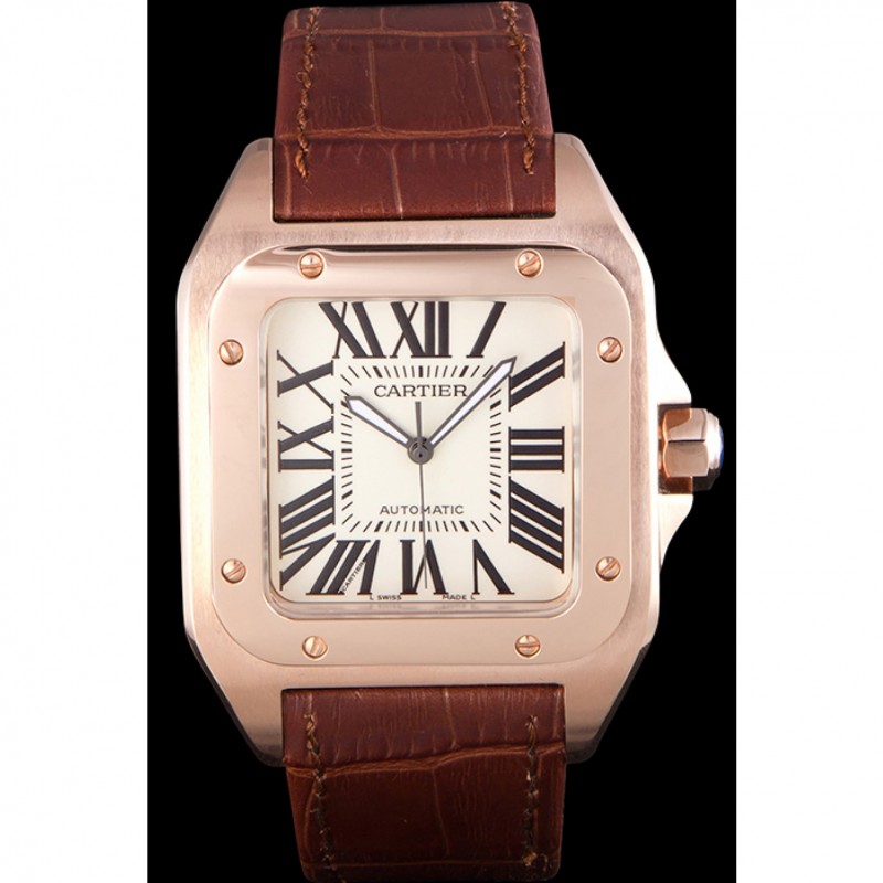 Inicio / Cartier / Oro Rosa suizo Cartier Santos con correa de cuero marrón 621522