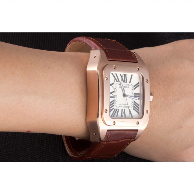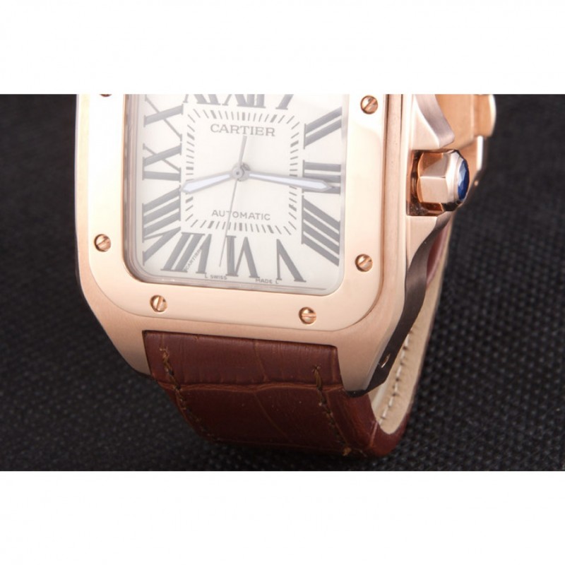 Oro Rosa suizo Cartier Santos con correa de cuero marrón 621522