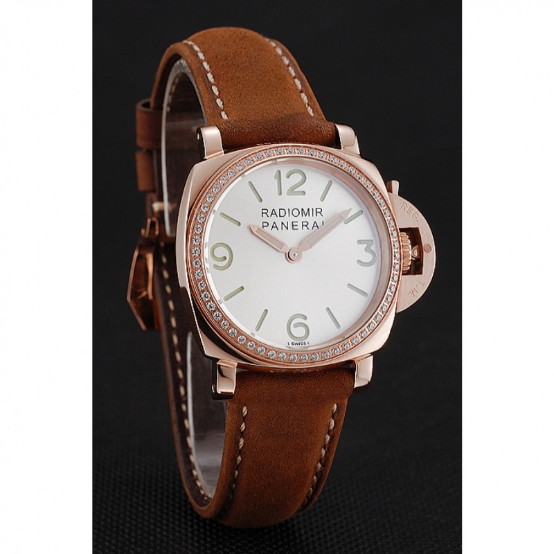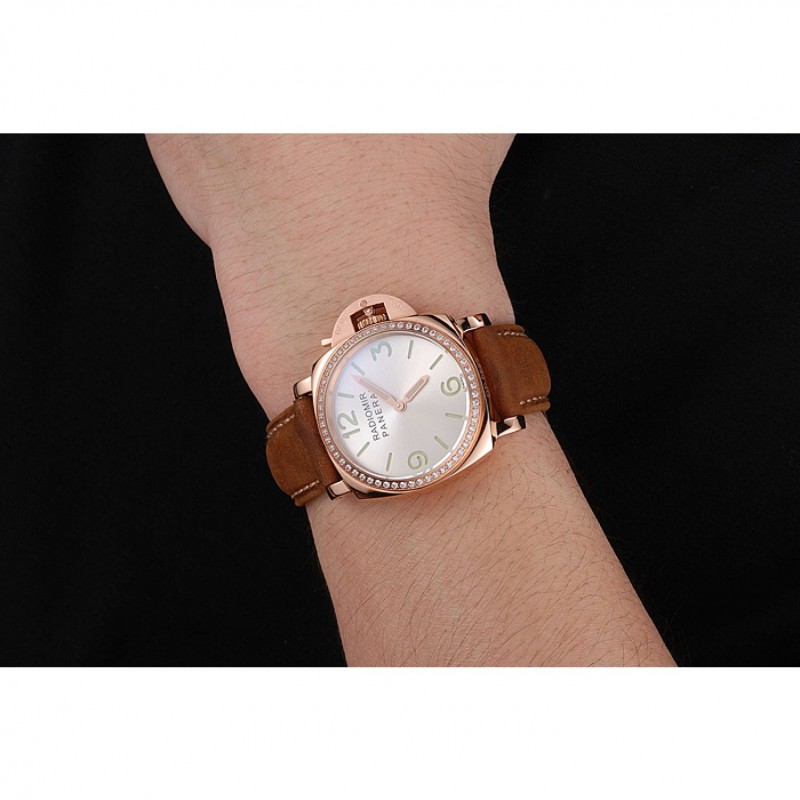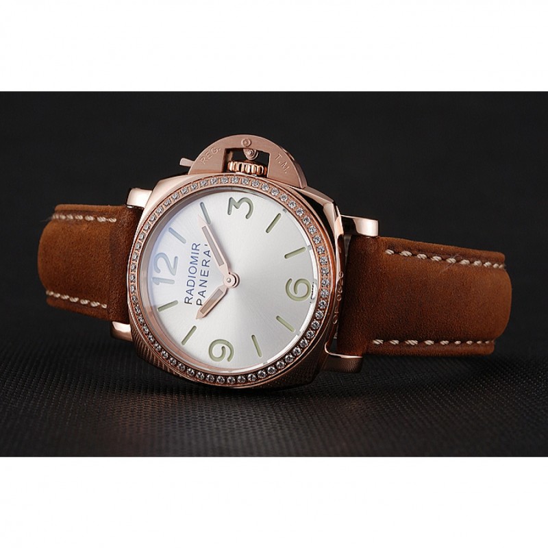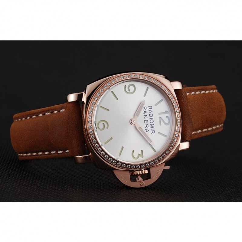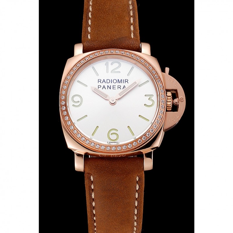 Inicio / Panerai / Radiomir / Panerai Blanco Dial Diamond Bisel Caja Oro Rosa Gamuza marrón correa de cuero 1453799