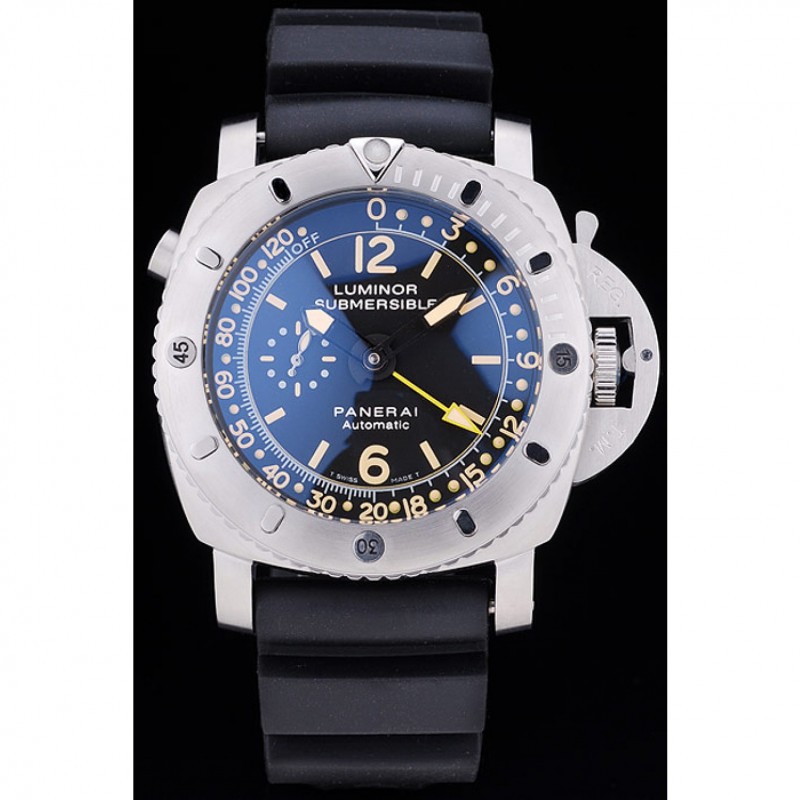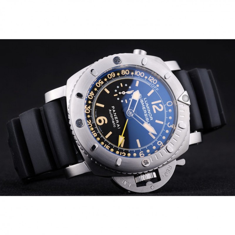 pulsera: El calor en relieve Officine Panerai Italia estampada correa de caucho negro con acero inoxidable gancho hebilla de cierre