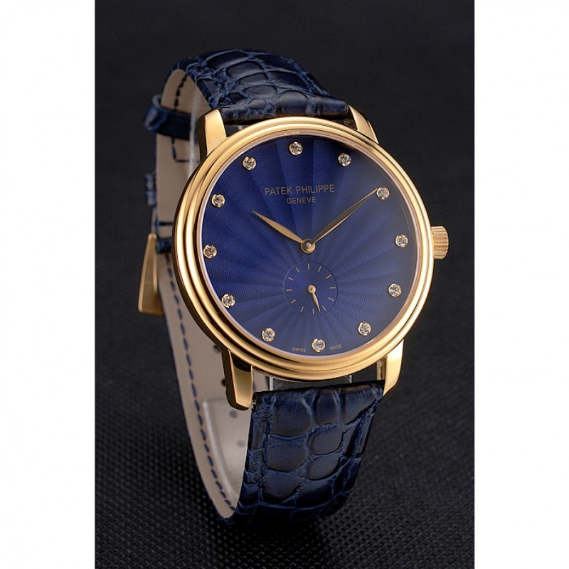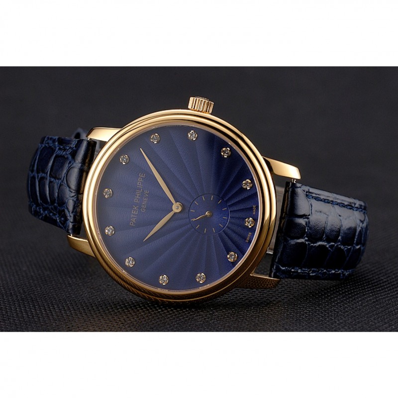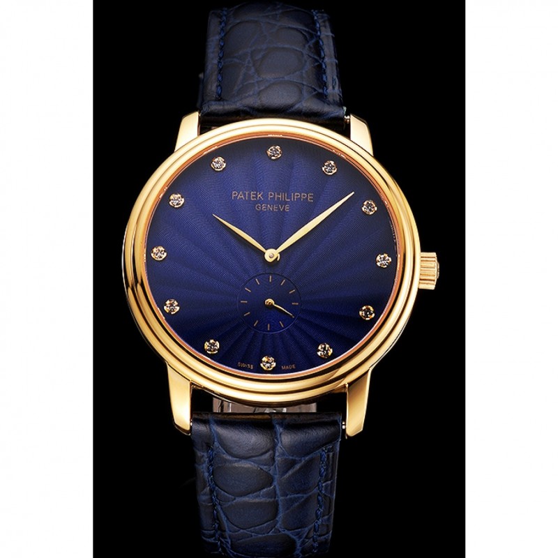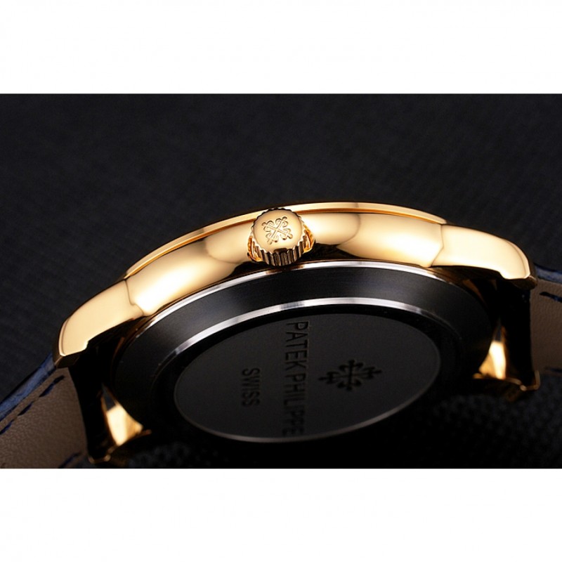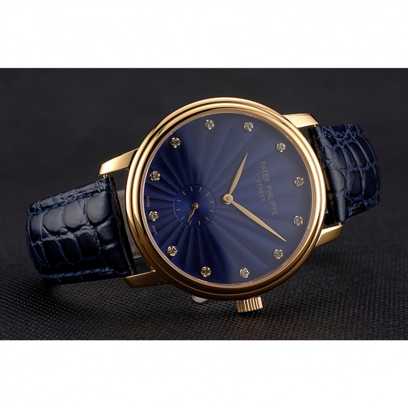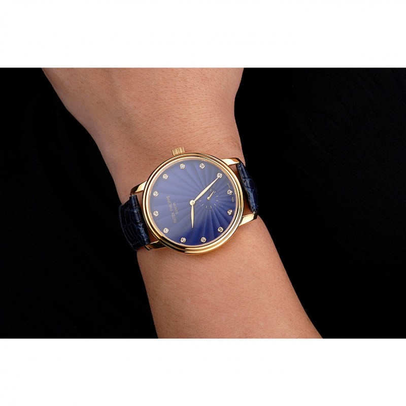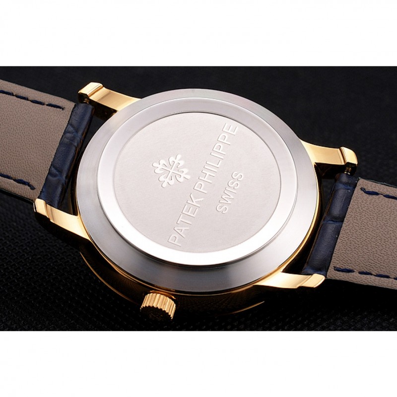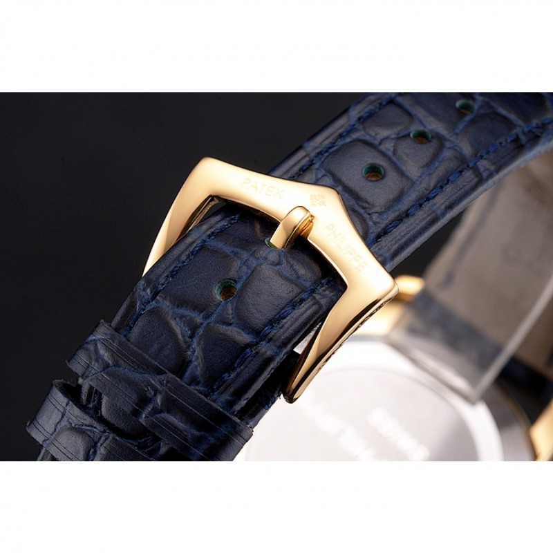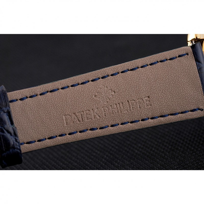 Inicio / Patek Philippe / Calatrava / Patek Philippe azul Guilloche Dial correa de cuero de la caja del oro azul