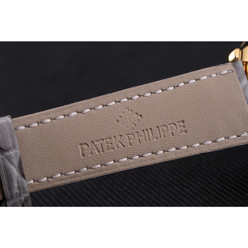 pulsera: Patek Philippe y logo calor en relieve correa de piel de cocodrilo gris con Patek Philippe y el logotipo inscrito 18k oro amarillo plateado gancho hebilla de cierre