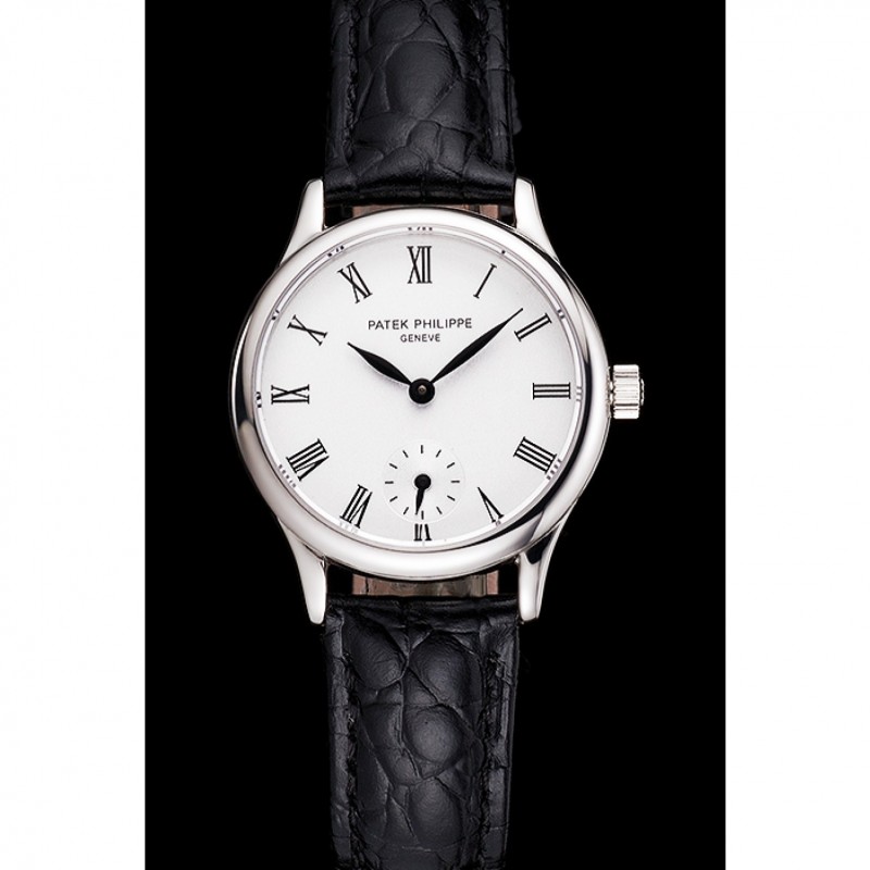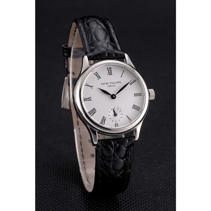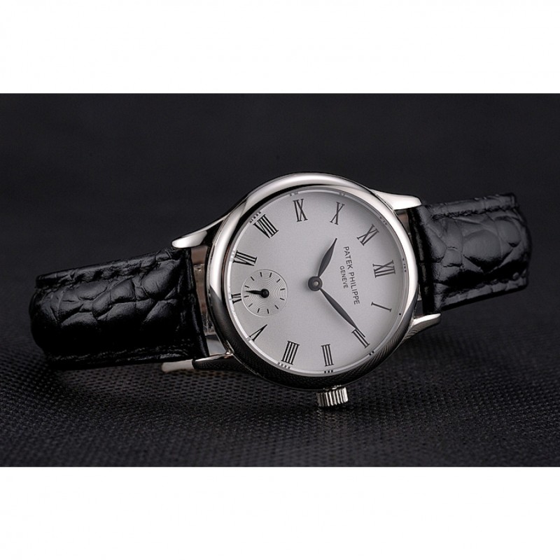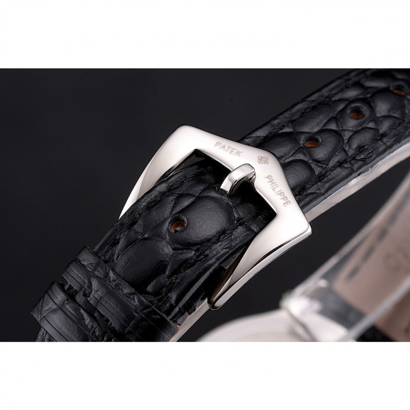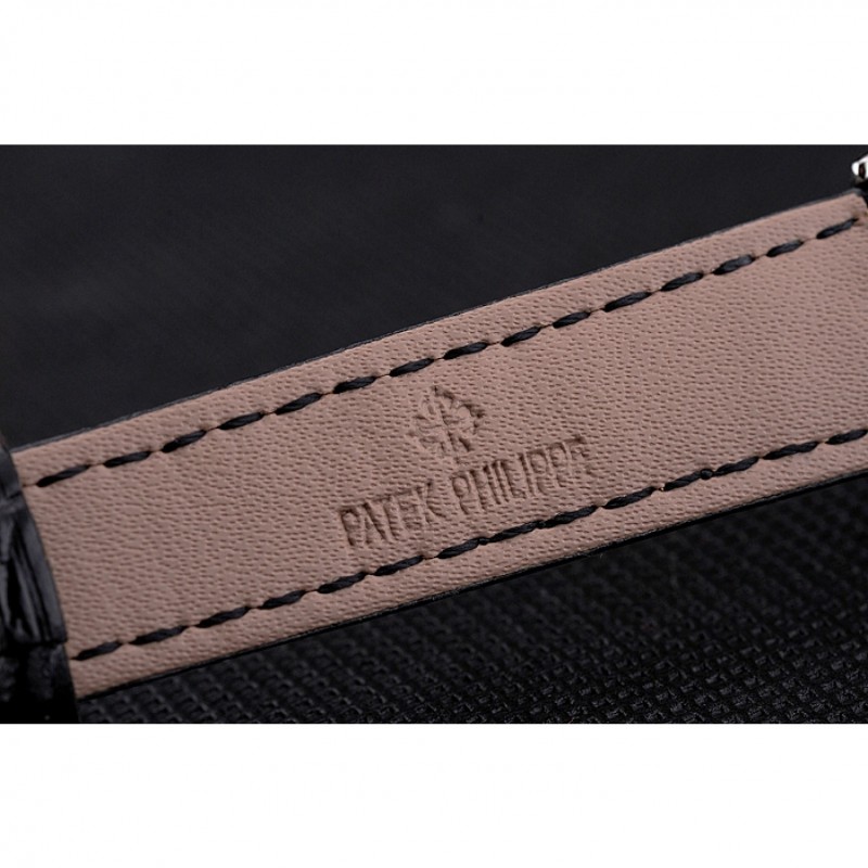 pulsera: Patek Philippe y el calor logotipo en relieve negro correa de piel de cocodrilo con Patek Philippe y el logotipo inscrito broche de acero inoxidable pulido gancho hebilla