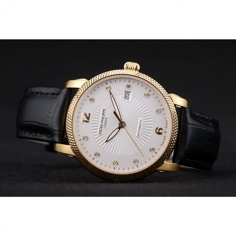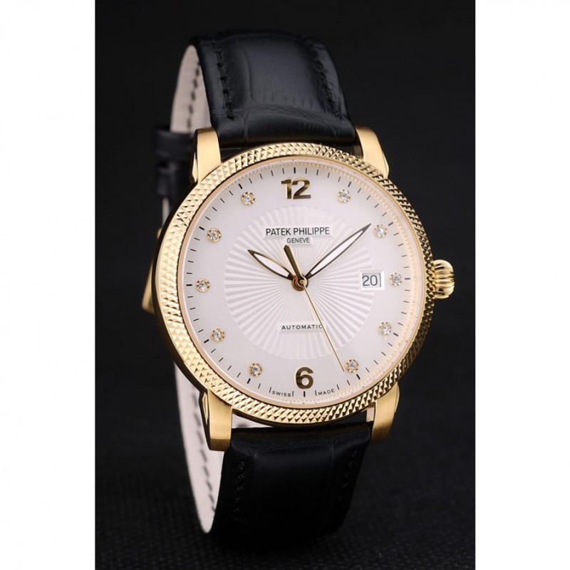 pulsera: correa de piel de cocodrilo negro del logotipo, el calor Patek Philippe Geneve en relieve con Patek Philippe y el logotipo grabado 18k oro amarillo plateado gancho hebilla de cierre