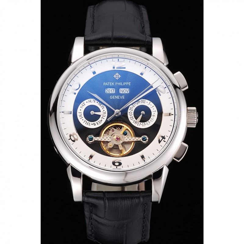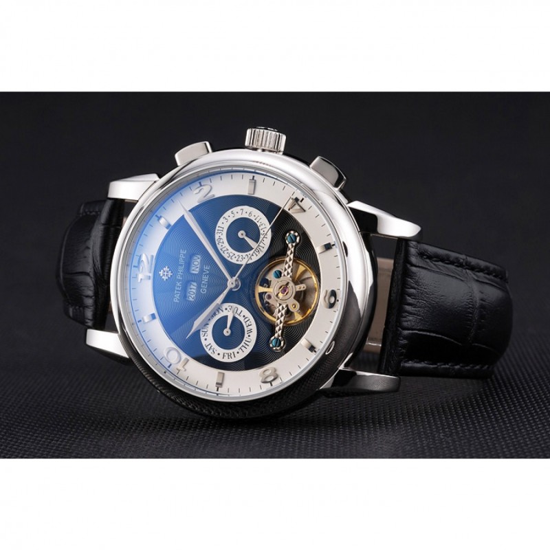 pulsera: correa de piel de cocodrilo negro de calor Patek Philippe Geneve en relieve con el logotipo y Patek Philippe inscrito pulida de acero inoxidable gancho hebilla de cierre
