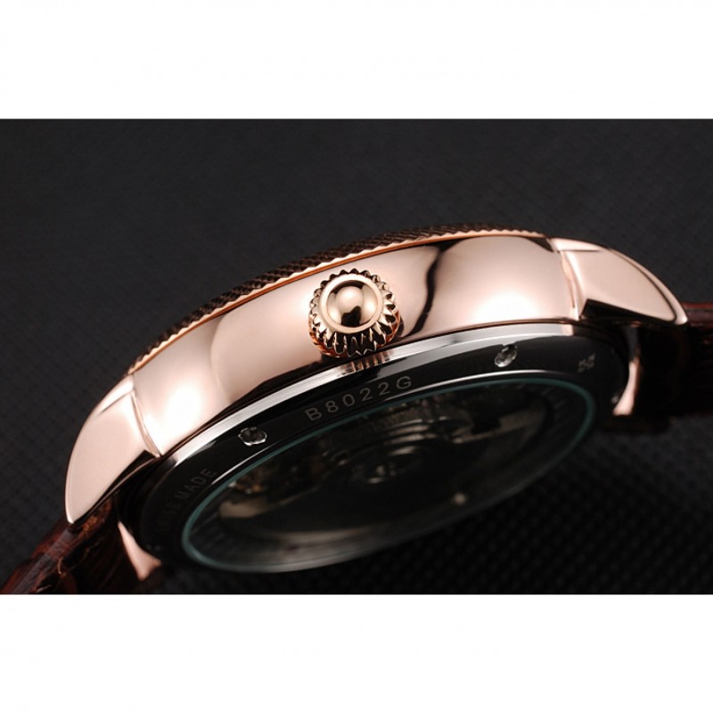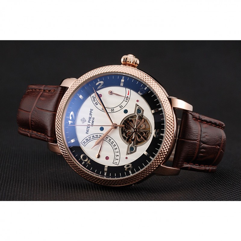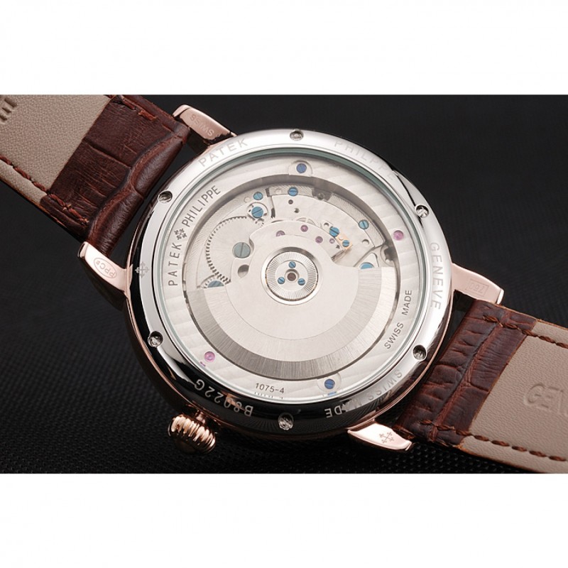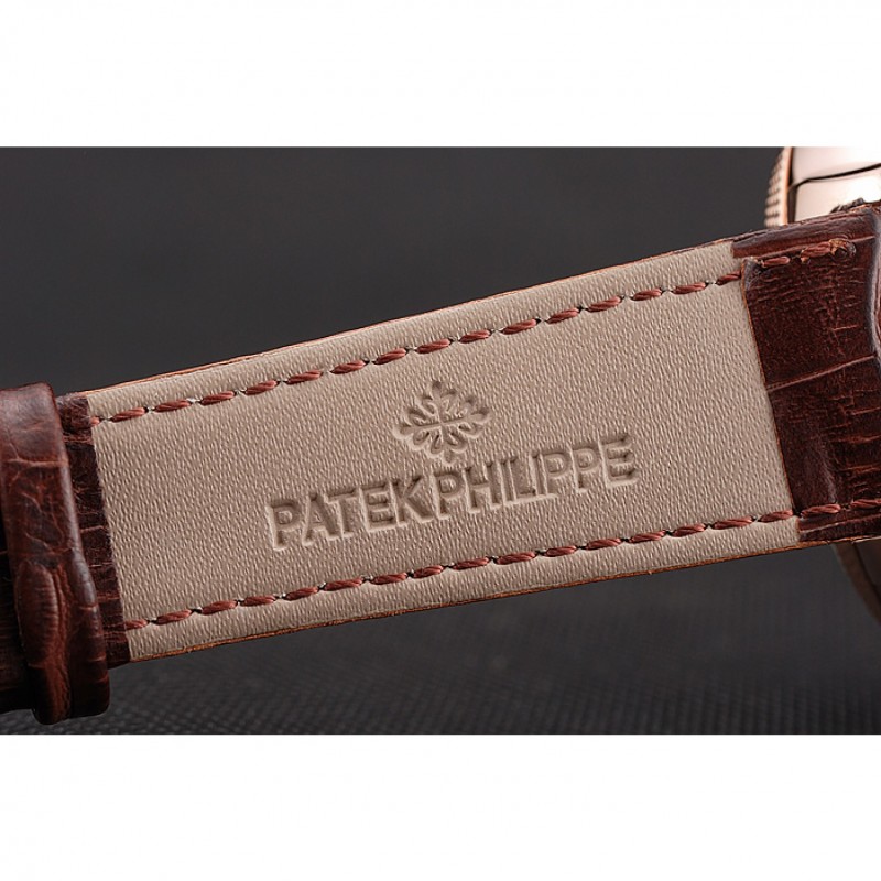 pulsera: Patek calor Philippe Geneve en relieve correa de piel de cocodrilo marrón con logotipo y Patek Philippe inscrito rosa de 18 quilates chapado en oro gancho hebilla de cierre