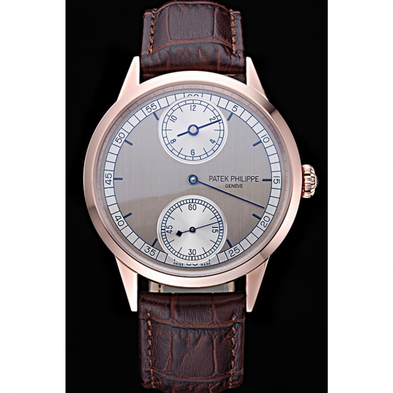 pulsera: logotipo y correa de piel de cocodrilo marrón en relieve de calor Patek Philippe Geneve rosa de 18 quilates chapado en oro calado logotipo corchete del gancho