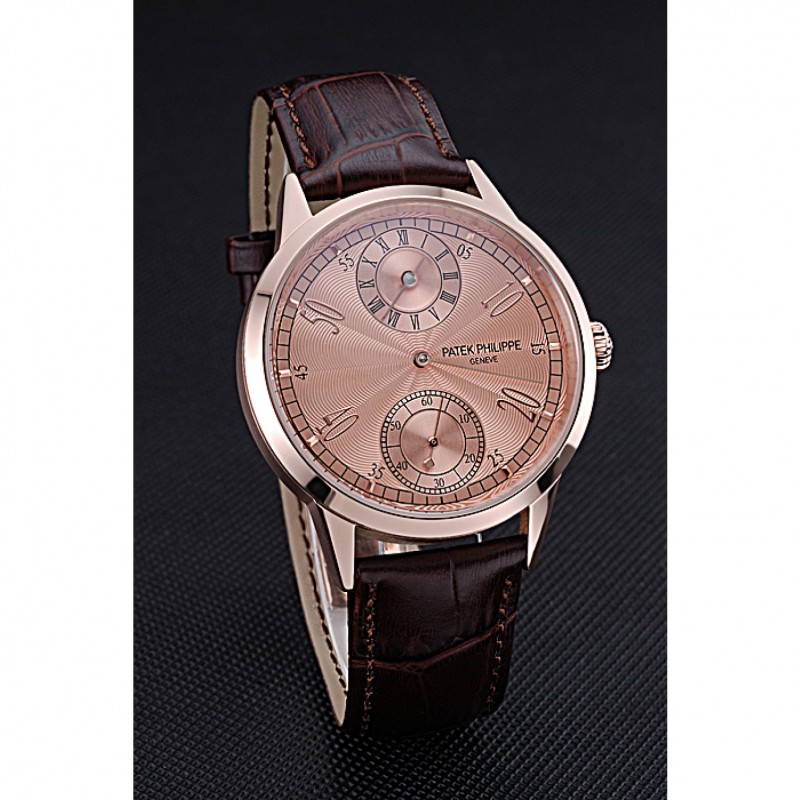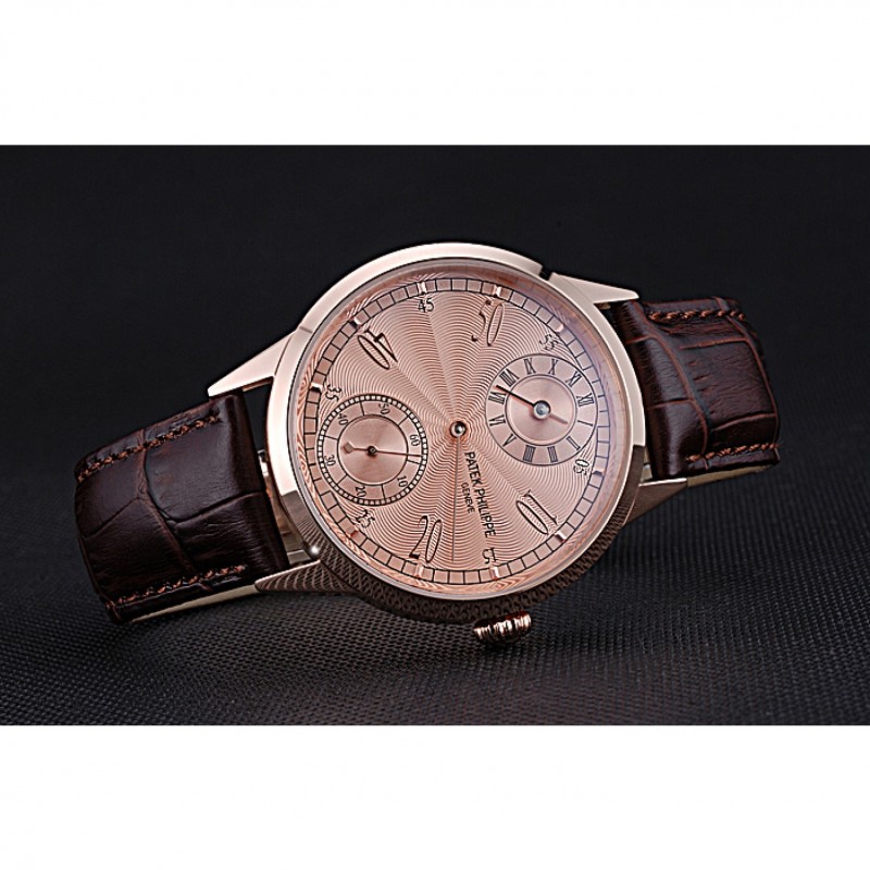 pulsera: logotipo y correa de piel de cocodrilo marrón en relieve de calor Patek Philippe Geneve rosa de 18 quilates chapado en oro calado logotipo corchete del gancho