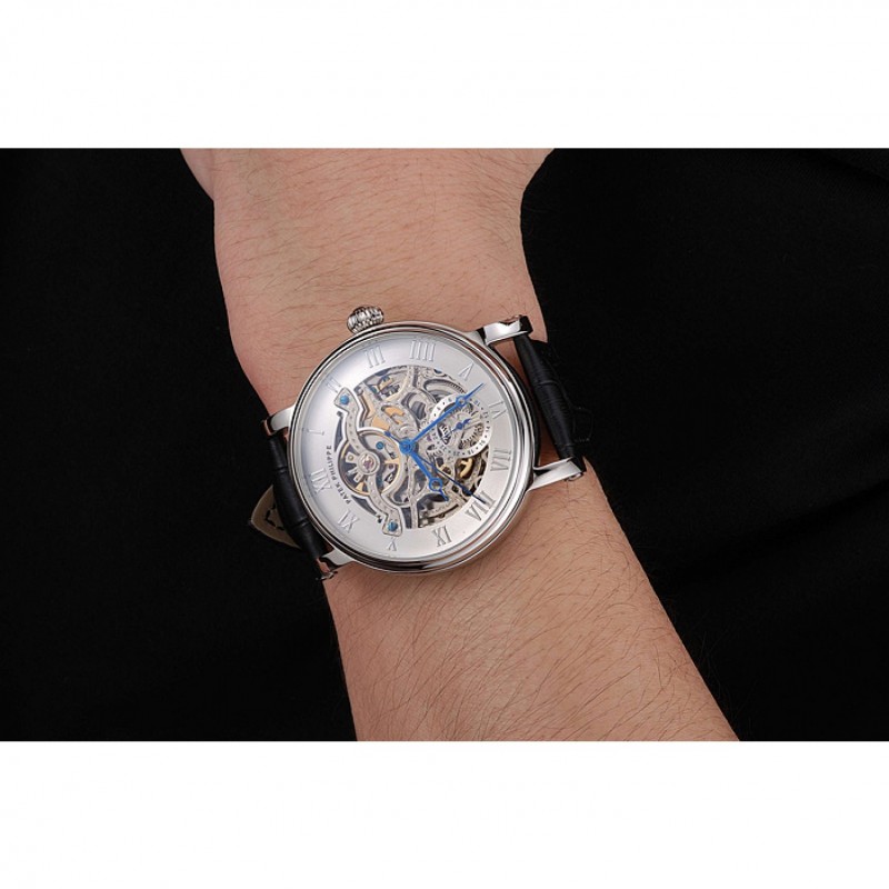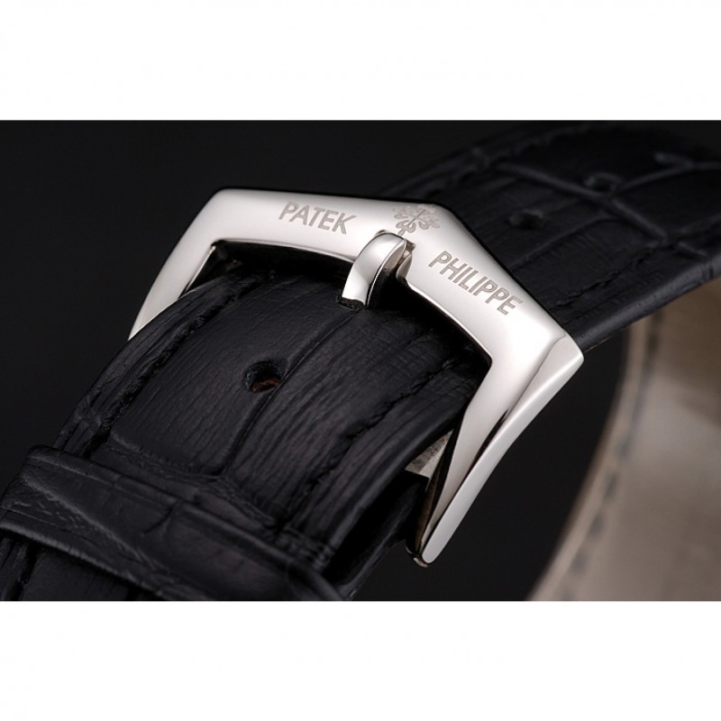 Inicio / Patek Philippe / Complications / Patek Philippe Grand complicaciones blanca Esqueleto Dial caja de acero inoxidable Negro correa de cuero 1453810