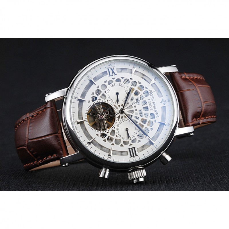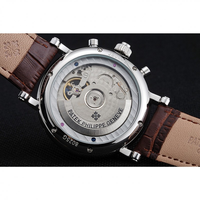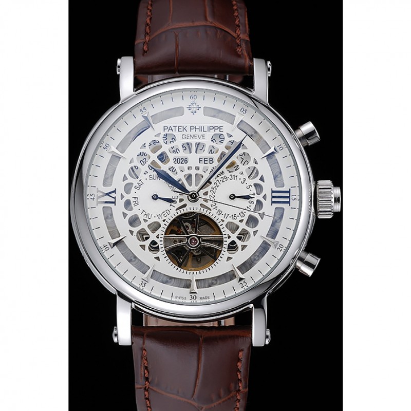 Inicio / Patek Philippe / Complications / Patek Philippe Grand complicaciones Calendario Anual Blanco Dial de plata del caso Brown pulsera de cuero 1454233