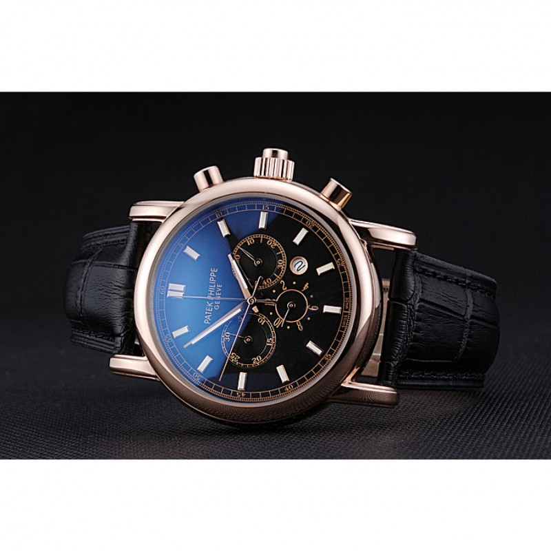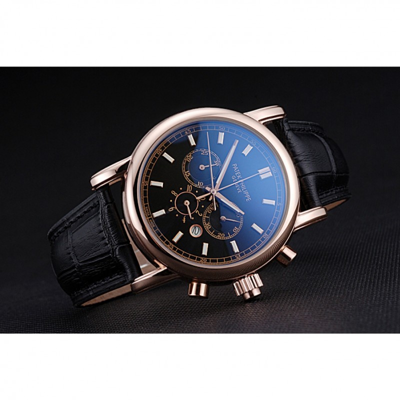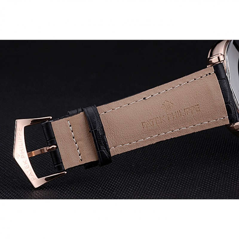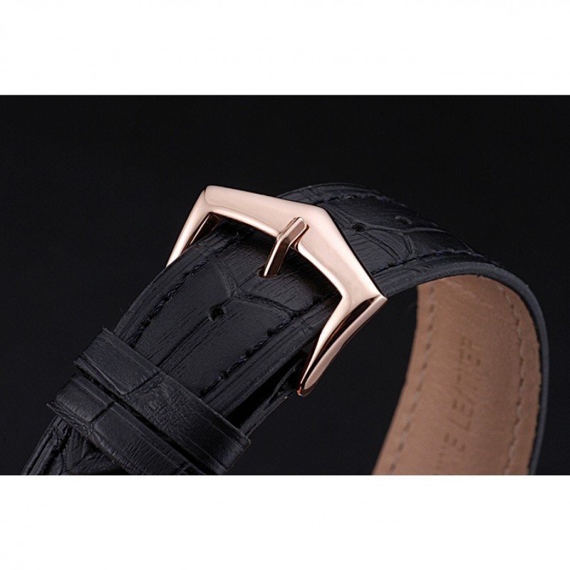 pulsera : logotipo y correa de cuero Patek Philippe Geneve calor en relieve de cocodrilo negro con rosa de 18 quilates chapado en oro gancho hebilla de cierre