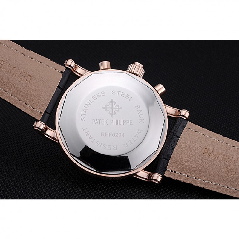 Crown: 18k logo Patek Philippe grabado rosa-chapado en oro corona cutwork con un botón pulsador ronda corona en cada lado de ella