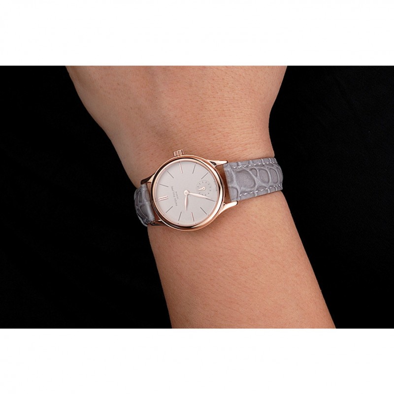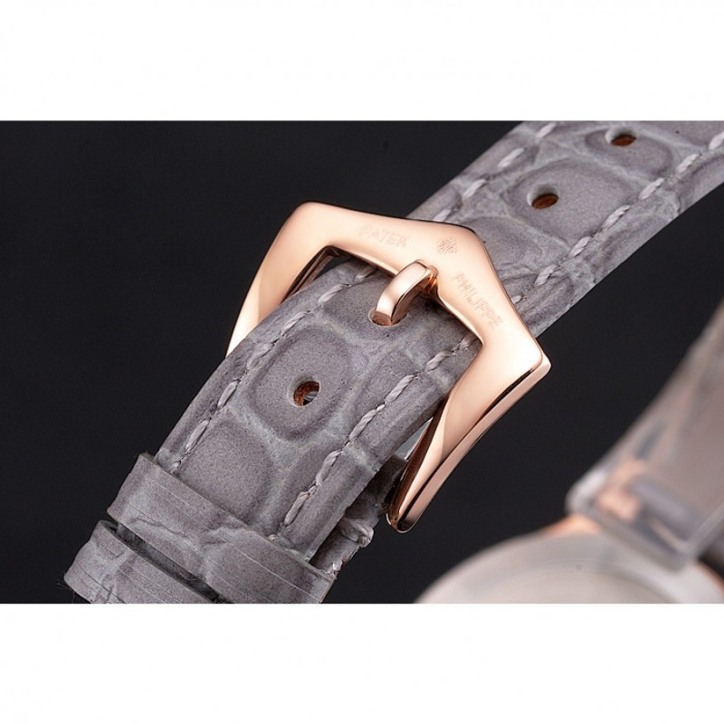 Me encanta mi reloj Patek Philippe con correa de cuero gris y caja de oro rosa. La calidad japonesa Miyota y el diseño elegante lo hacen perfecto para mujeres. La correa de cocodrilo es cómoda y el cierre es seguro. ¡Lo recomiendo!