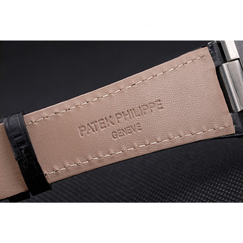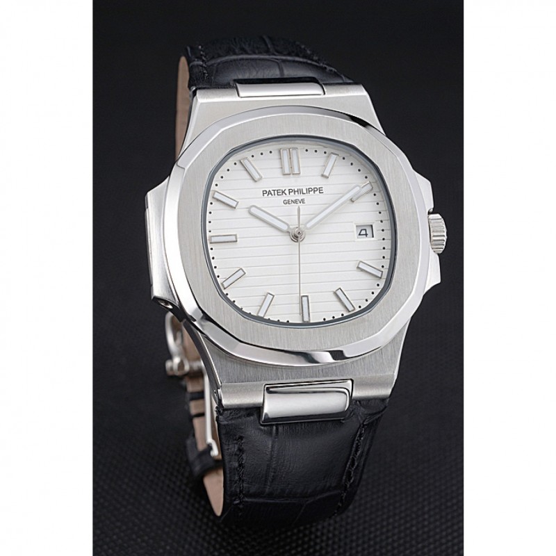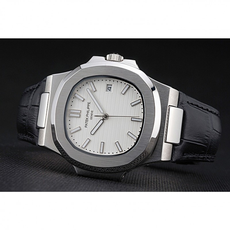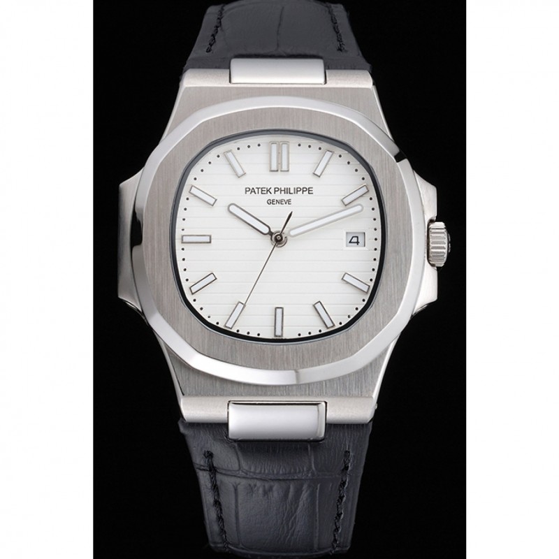 Inicio / Patek Philippe / Nautilus / Patek Philippe Nautilus esfera blanca correa de cuero cepillado caja de acero inoxidable Negro