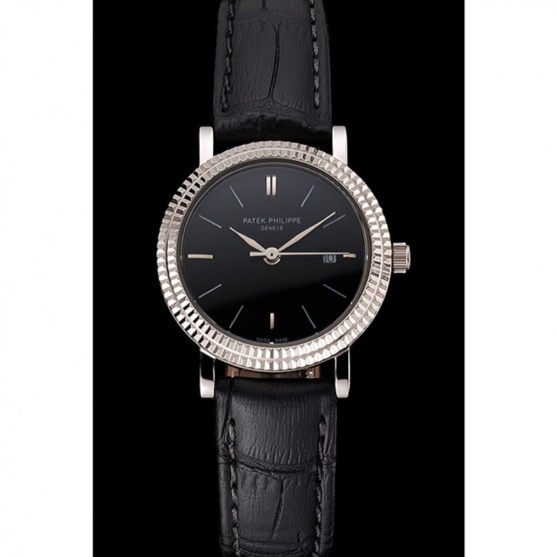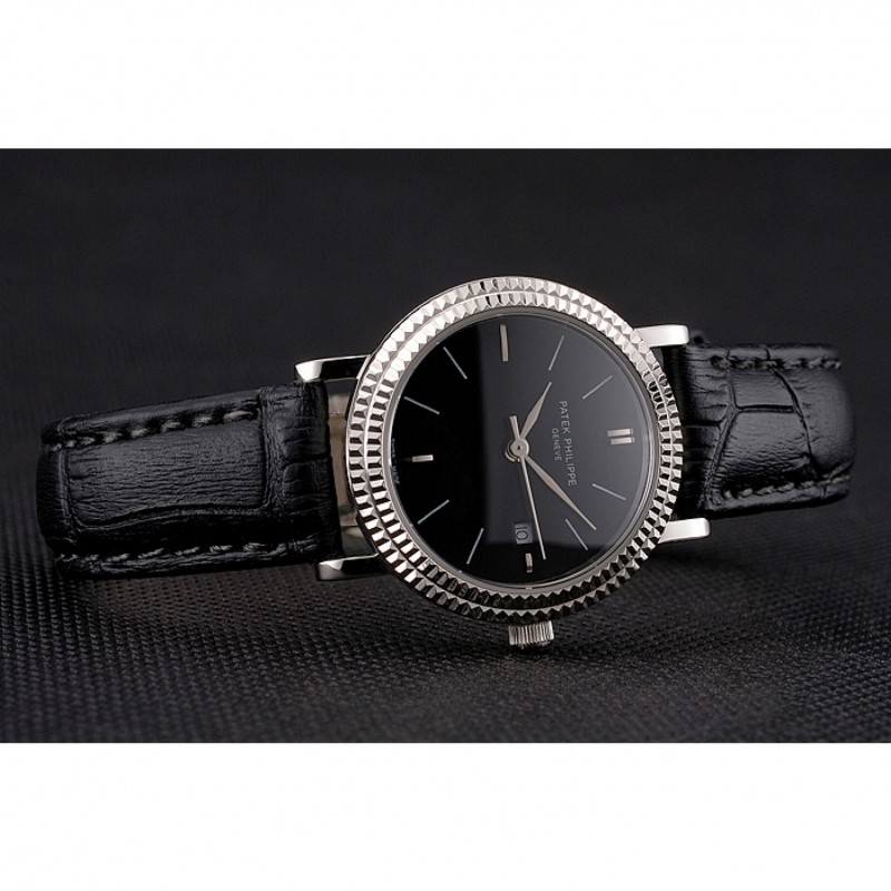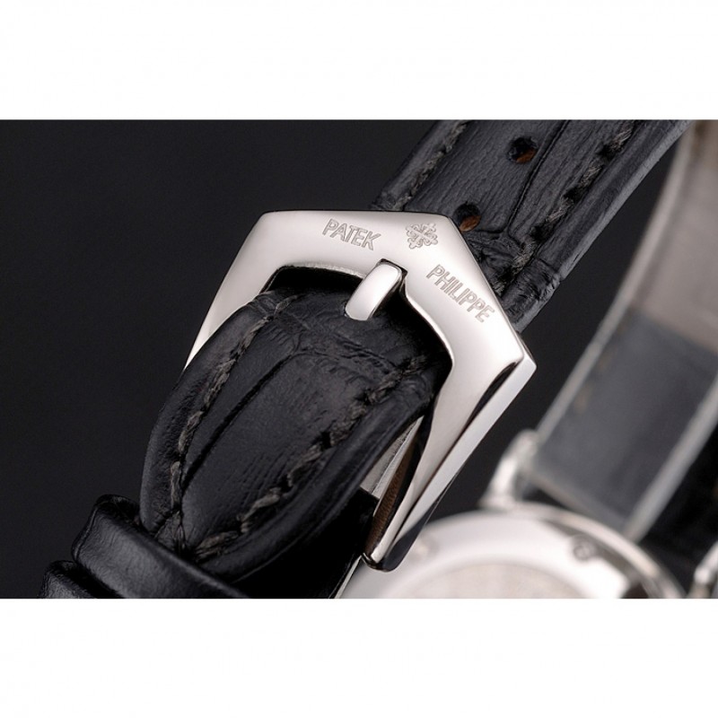 pulsera: logo y Patek Philippe calor en relieve correa de piel de cocodrilo negro con el logotipo y Patek Philippe grabado de acero inoxidable pulido gancho hebilla de cierre